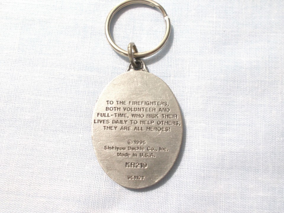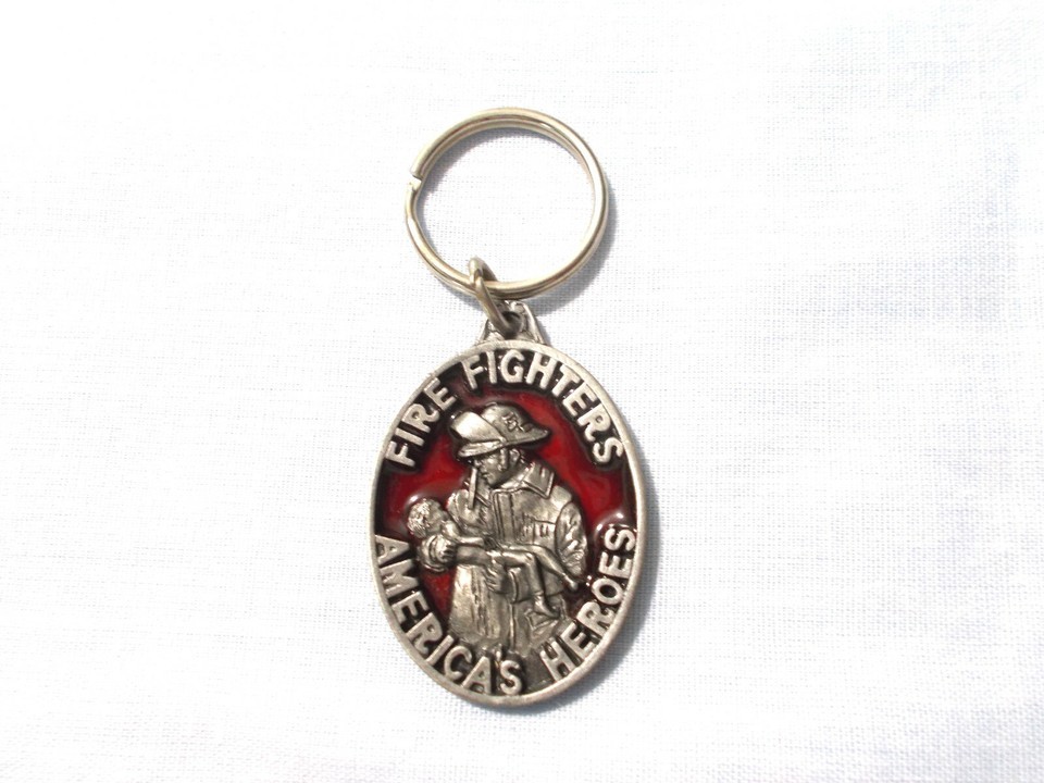 FIRE FIGHTERS AMERICA'S HEROES PEWTER RED INLAY USA MADE KEY RING 1996 VINTAGE