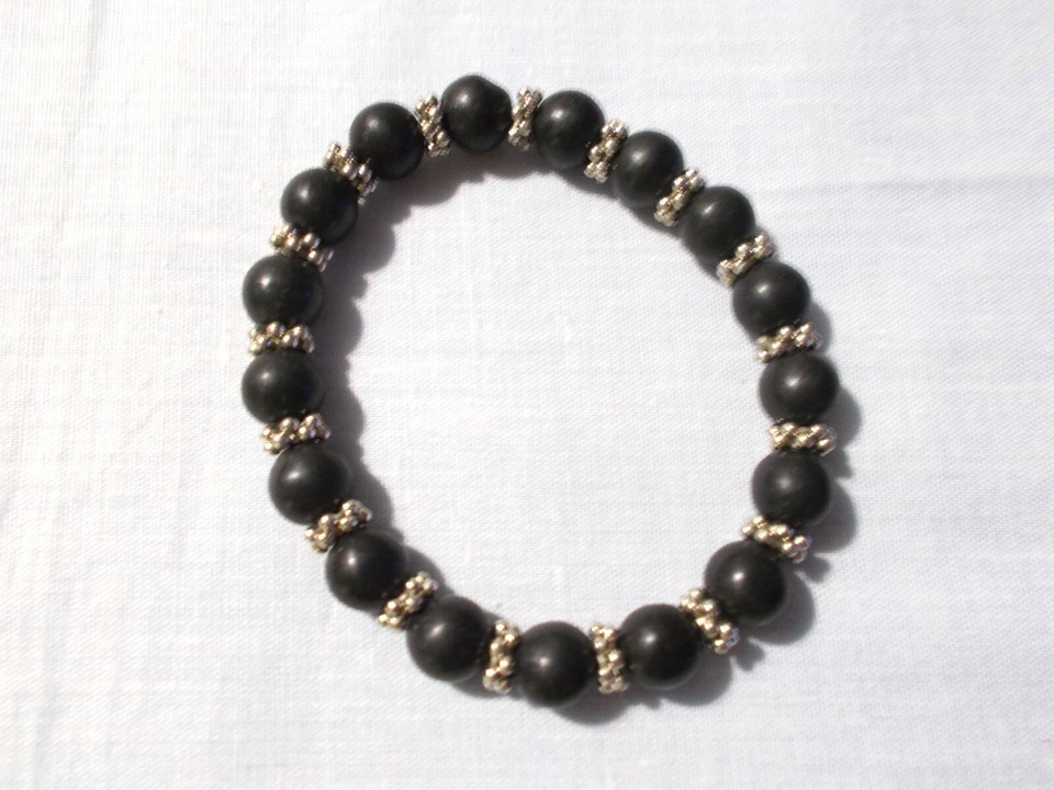 BLACK HOWLITE BEADS with BALI BEAD SPACERS STRETCH BRACELET 7.5 - 8.5"