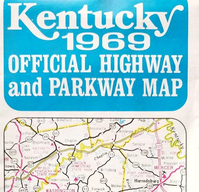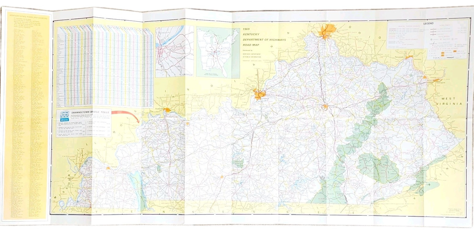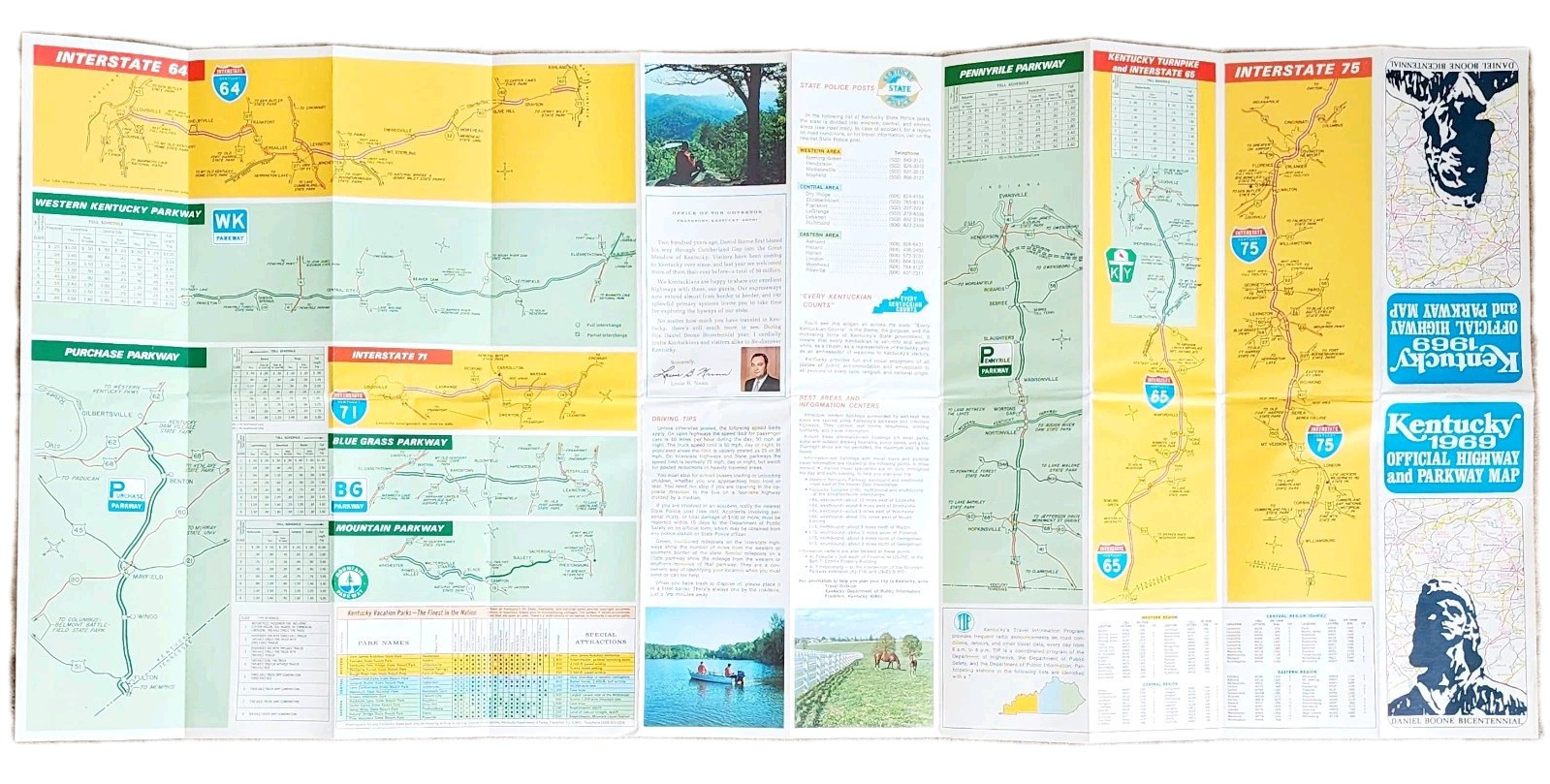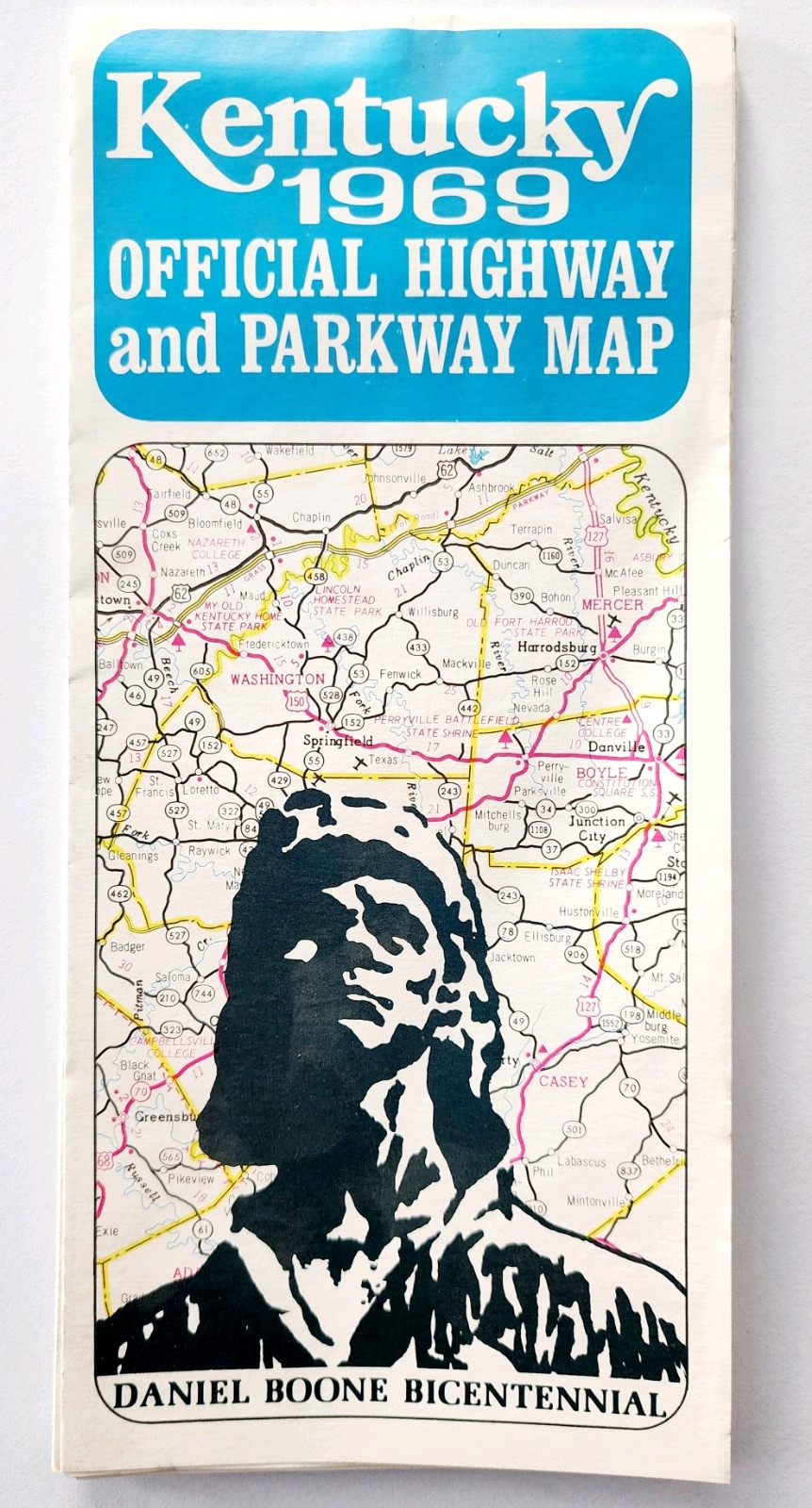1969 Kentucky Highway Parkway Map 2 Sided Vintage Daniel Boone Bicentennial E98B