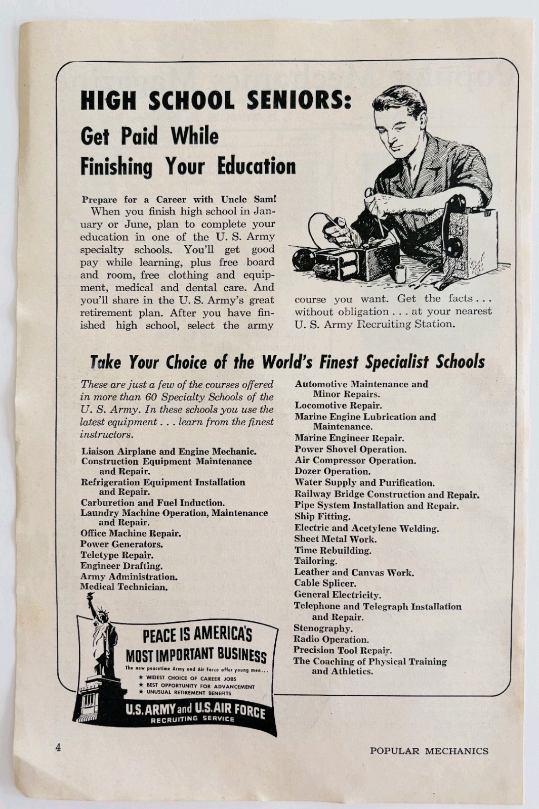 1949 US Army & Air Force Training Recruitment Advertisement Vintage Military E8L