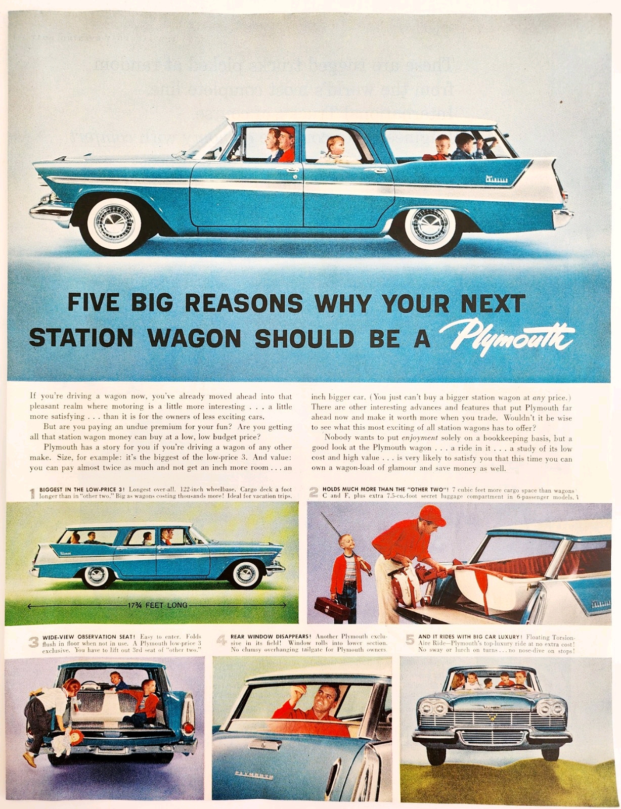 1958 Plymouth Station Wagon Advertisement Automobilia Floating Torsion DWII29