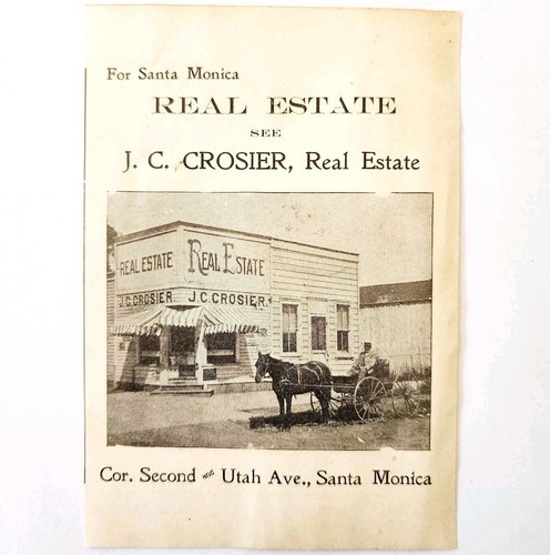 1910 J.C. Crosier Advertisement Horde Carriage California Real Estate E88E