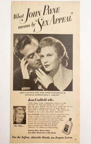 Jergens Joan Caulfield John Payne Lotion 1948 Advertisement Beauty DWNN14
