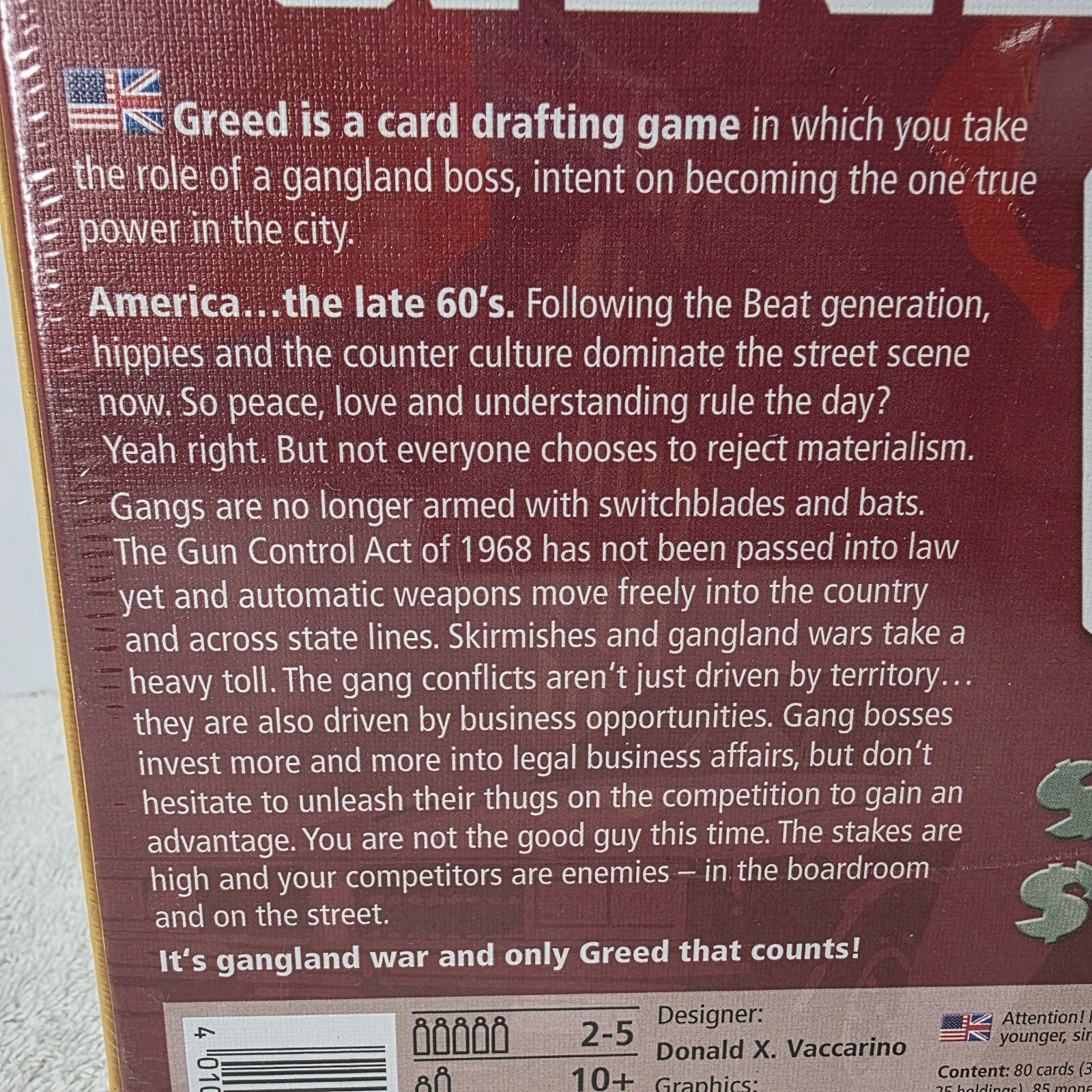2014 Greed Card Drafting Game by Queen Games NEW SEALED - 2-5 Players - Ages 10+