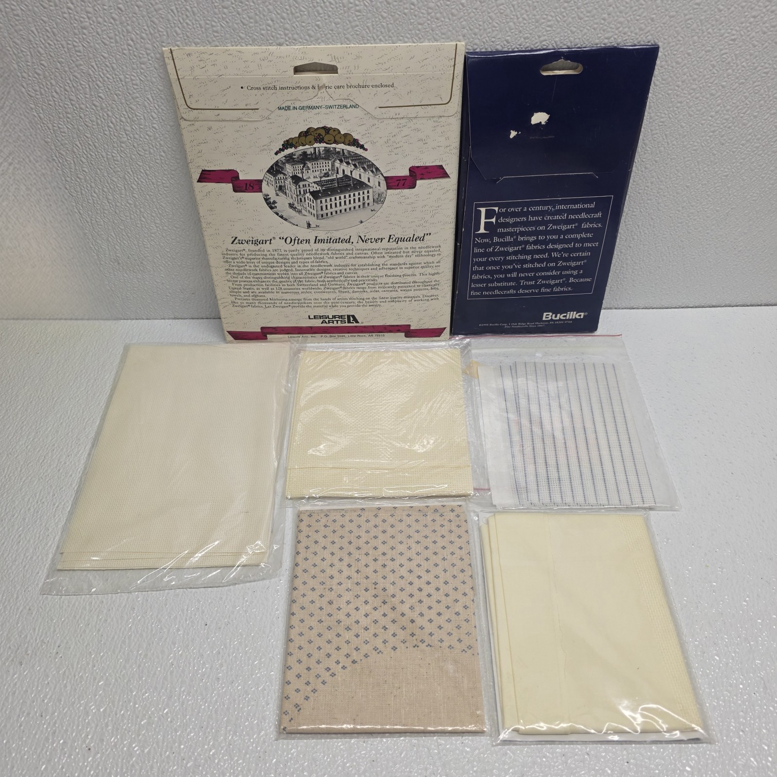 Lot of 7 Fabrics And Cross Stitch Fabrics. Images show actual lot that will ship.