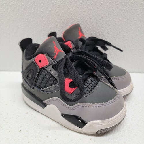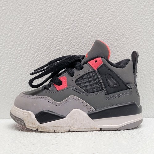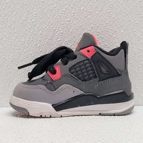 Nike Air Jordan 4 Retro TD Infrared Grey BQ7670-061 Toddler Size 5C Sneakers. Images show actual shoes that will ship.