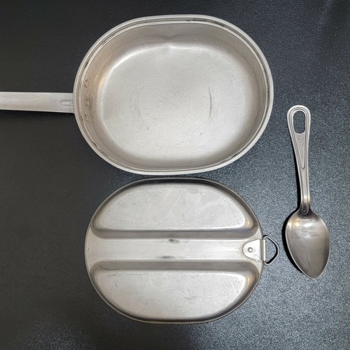 Great pre-owned Condition - Vietnam Era US Mess Kit - Manufactured By Regal 1966 DSA-400-67-C100-TR530. Includes a Pan / Tray / Spoon - It all folds up together! Silco Stainless Steel. Nice.