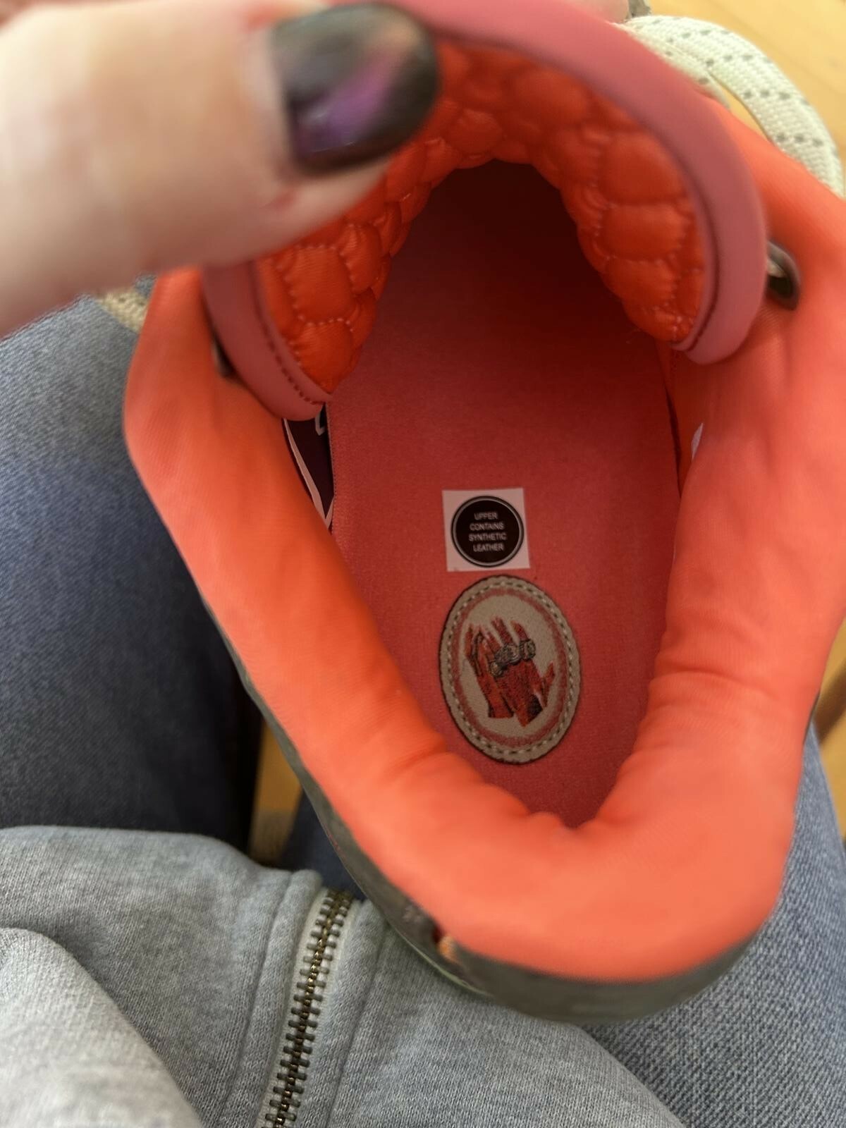 Nike men's sneakers featuring a unique textured design with a blend of dark and coral colors.