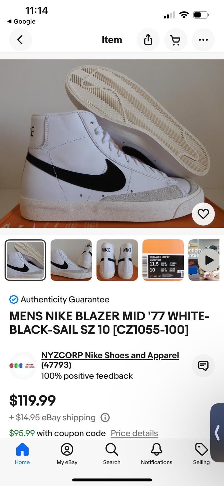 US size 12 Nike Blazer Mid Vintage White and similar items
