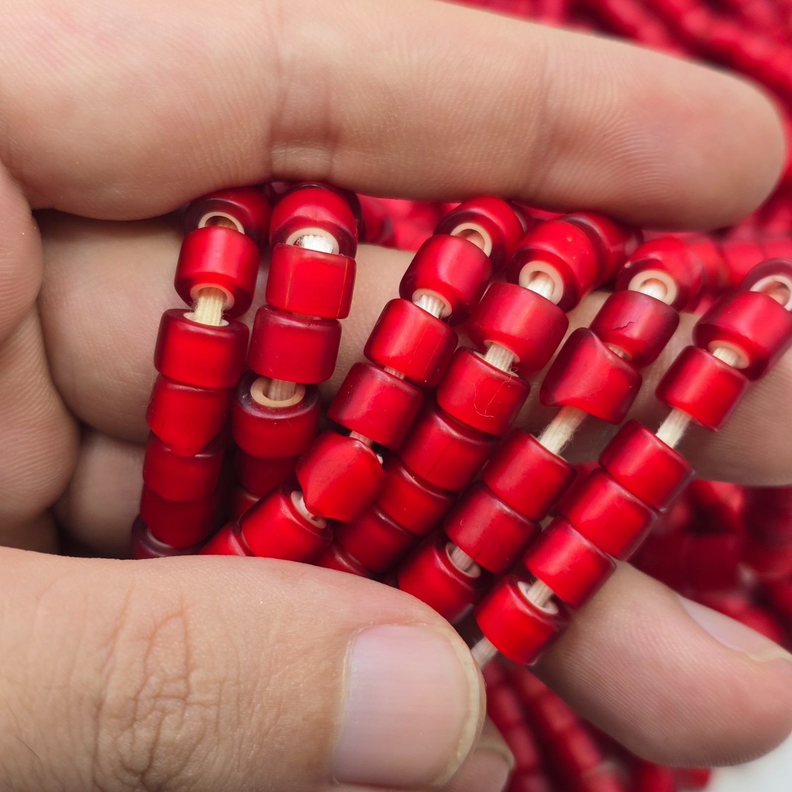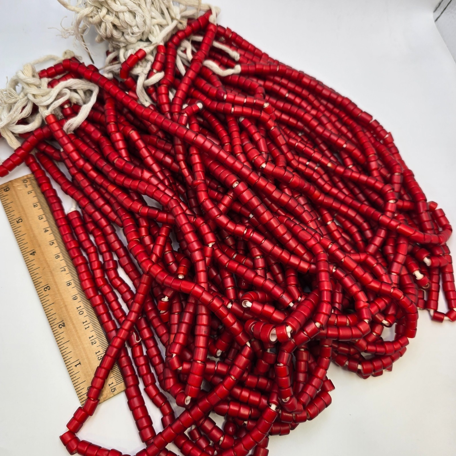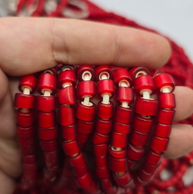 Das Produkt ist ein Vintage-Strang von 7-8 mm venezianischen weißen Herz-Handelsperlen mit einer einzigartigen Form, die jeder Schmuckkollektion eine unverwechselbare Note verleiht. Hergestellt aus Glas und bezogen aus Italien, sind diese authentischen Handelsperlen handgefertigt und original und spiegeln die Handwerkskunst und das Erbe der traditionellen venezianischen Perlenherstellung wider. Die leuchtend rote Farbe der Perlen verleiht jedem Outfit einen Farbtupfer und macht sie zu einer vielseitigen und auffalligen Wahl für Manner und Frauen.