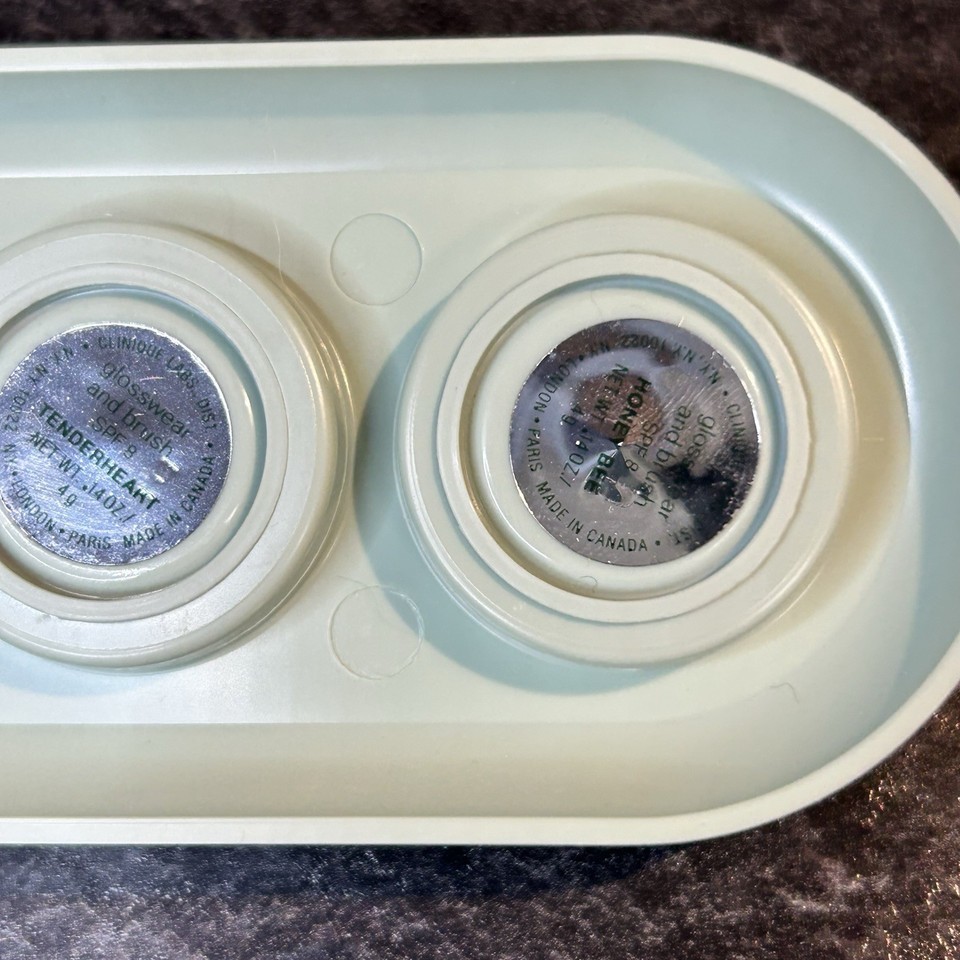 NEW Clinique Glosswear and Brush SPF 8 Lipgloss 5 Shades in jars- Tenderheart, Honey Bee, Air Kiss, Raspberry Jam, Cocoplum