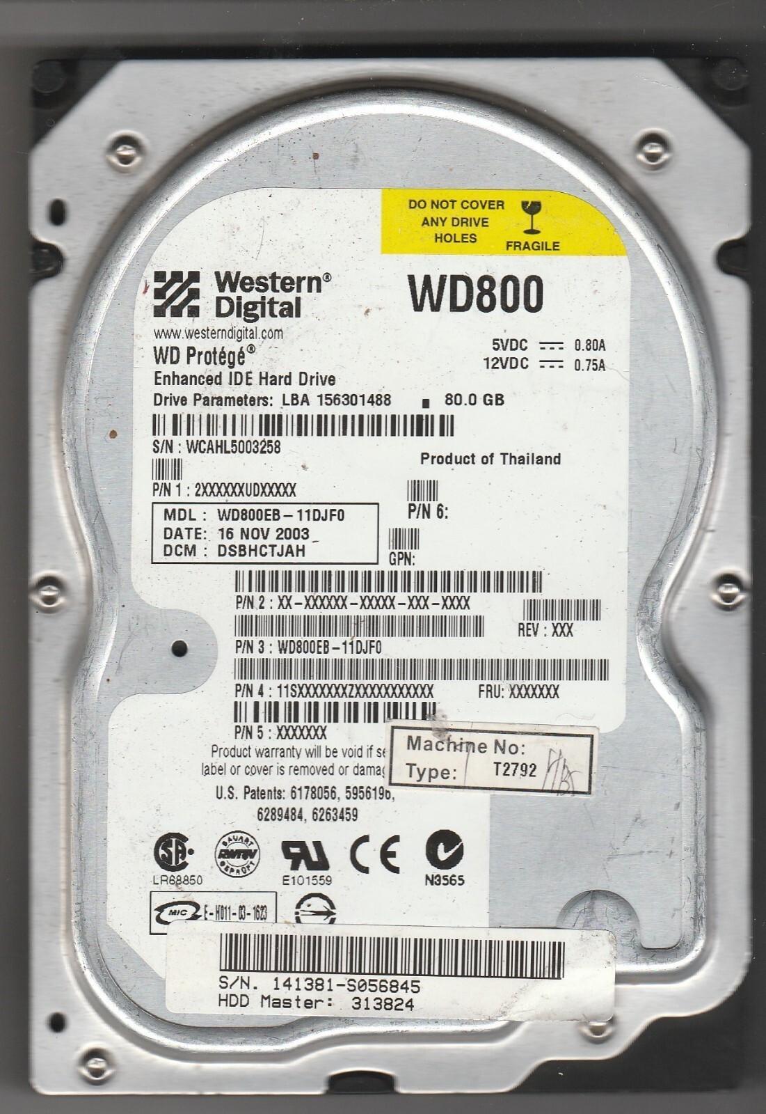 Western Digital Internal Disk Drive WD800 WCAHL5003258 80GB