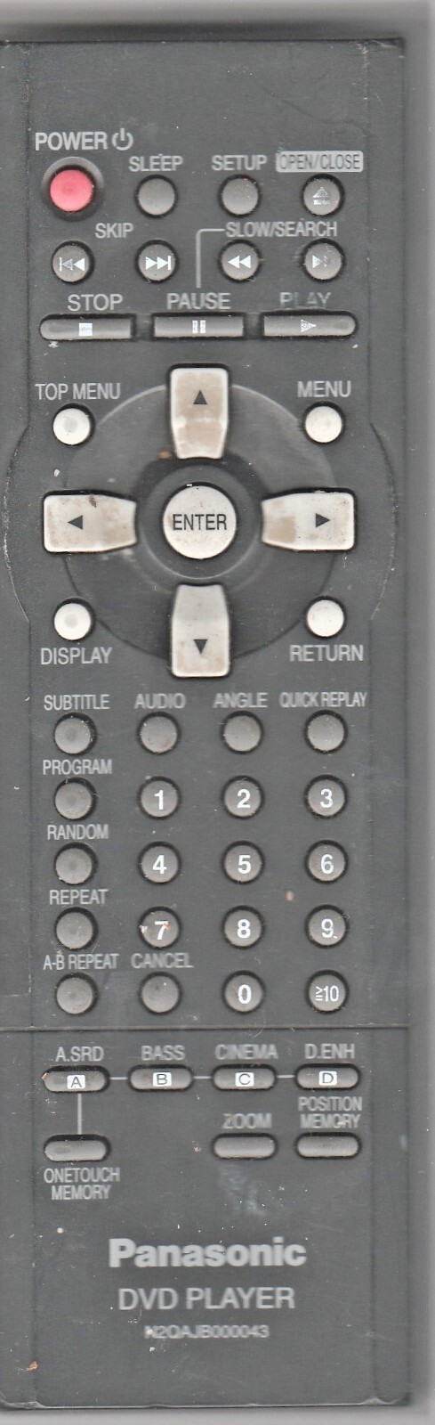 Panasonic DVD Player Remote Model # N2QAJB000043