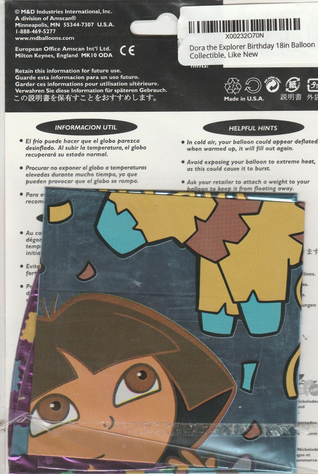 M & D Dora the Explorer Pinata Happy Birthday Feliz Cumpleanos 18" Foil Balloon