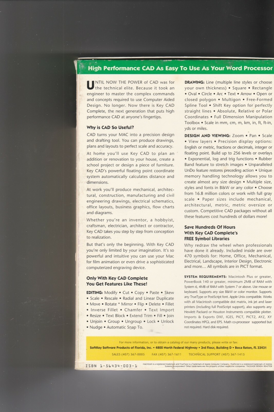 Key CadComplete Version 1.0 CD-ROM by SoftKey Software for MAC