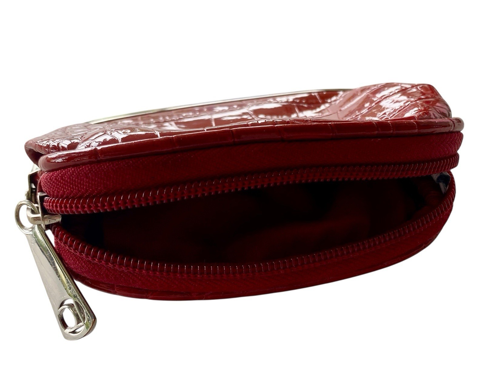 Liz Claiborne Vintage Red Embossed Kisslock Pouch 3 Compartments