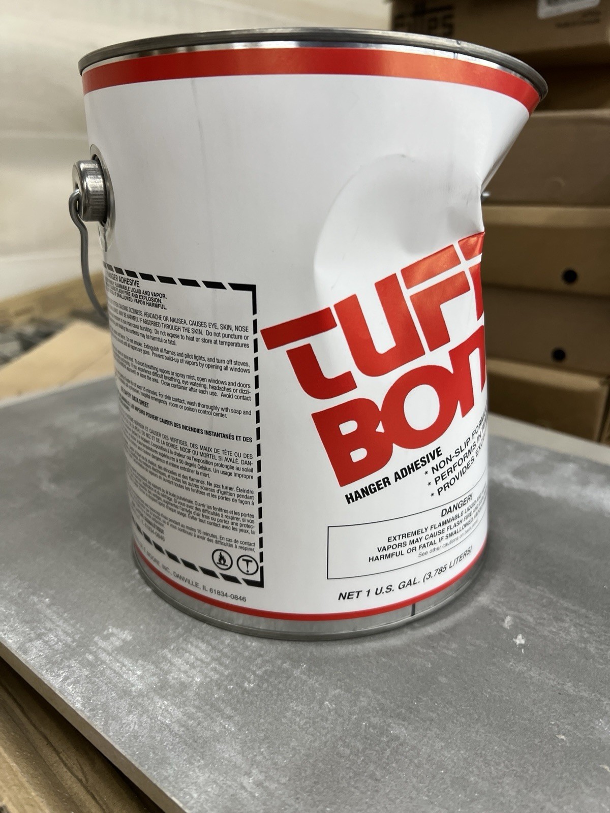 Tuff-Bond Hanger Adhesive is a high strength, heavy-bodied adhesive, specifically formulated for adhering insulation anchors. Tuff-Bond is also recommended for use as a general-purpose construction adhesive in application requiring a high-strength bond or in applications subjected to high temperatures. Tuff-Bond is only available in gallon sizes.