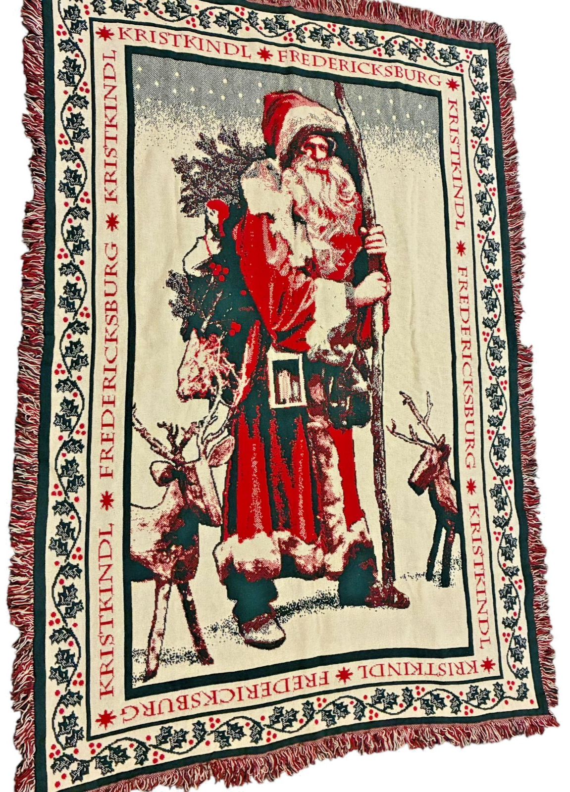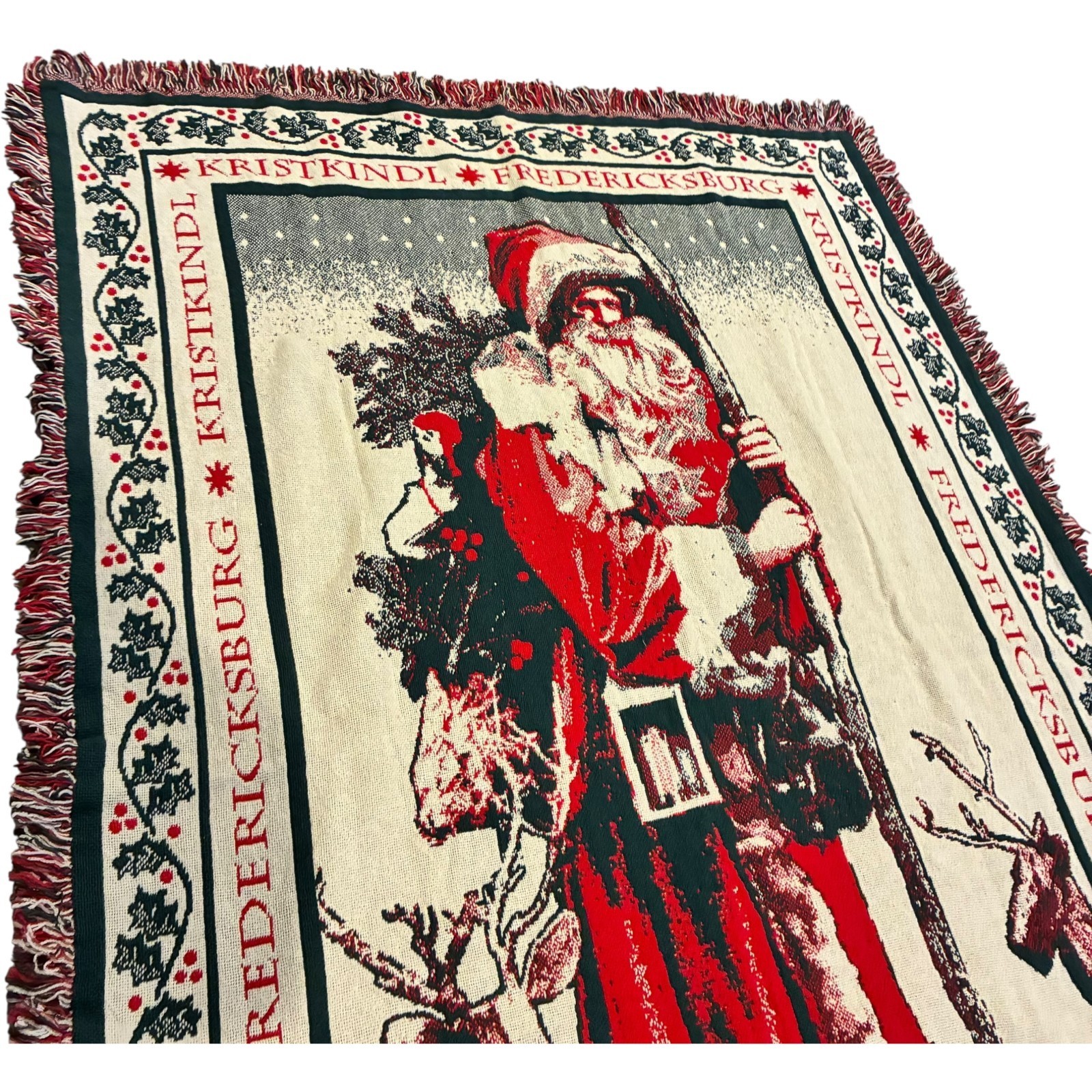 kristkindl fredericksburg tapestry throw santa claus reindeer 68 x 46 inches