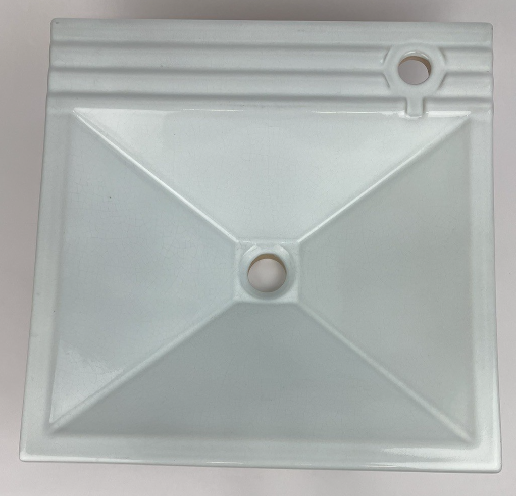 16" Square VESSEL SINK Basin handmade Ceramic Bathroom Baby Blue Tint