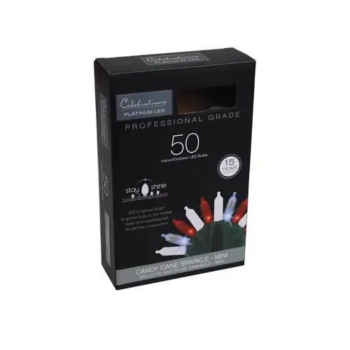 Celebrations T550CCSA LED T5 Red/White 50 ct String Christmas Lights 25 ft