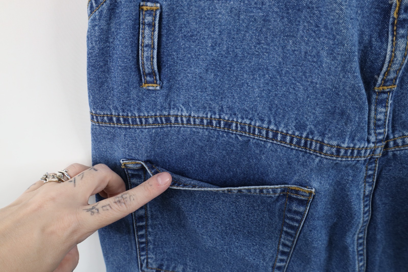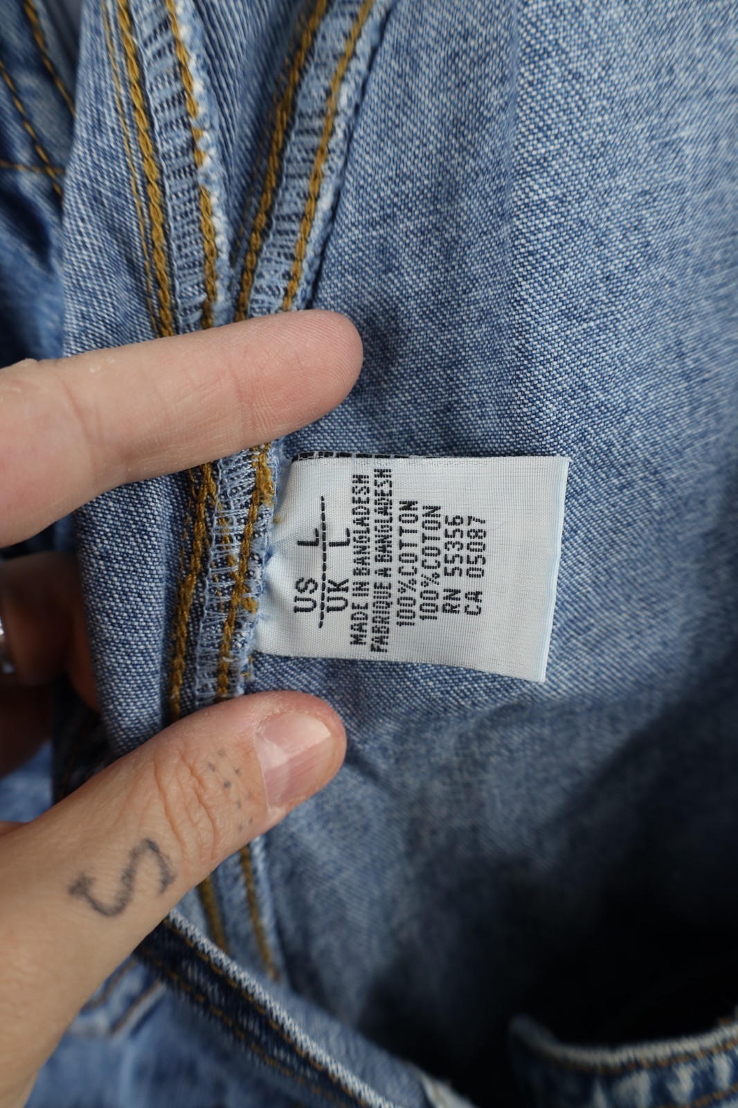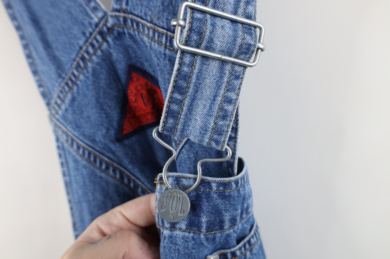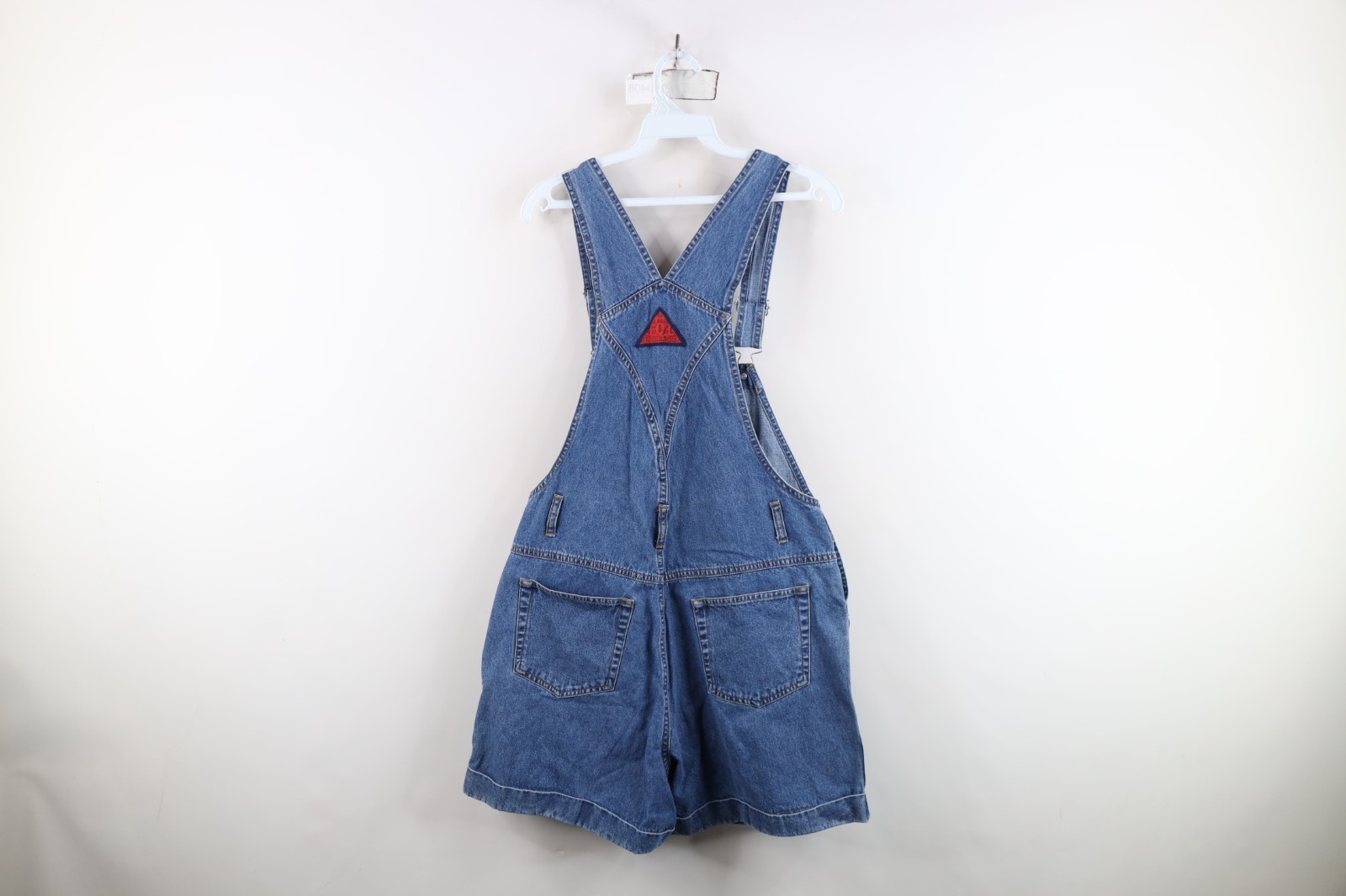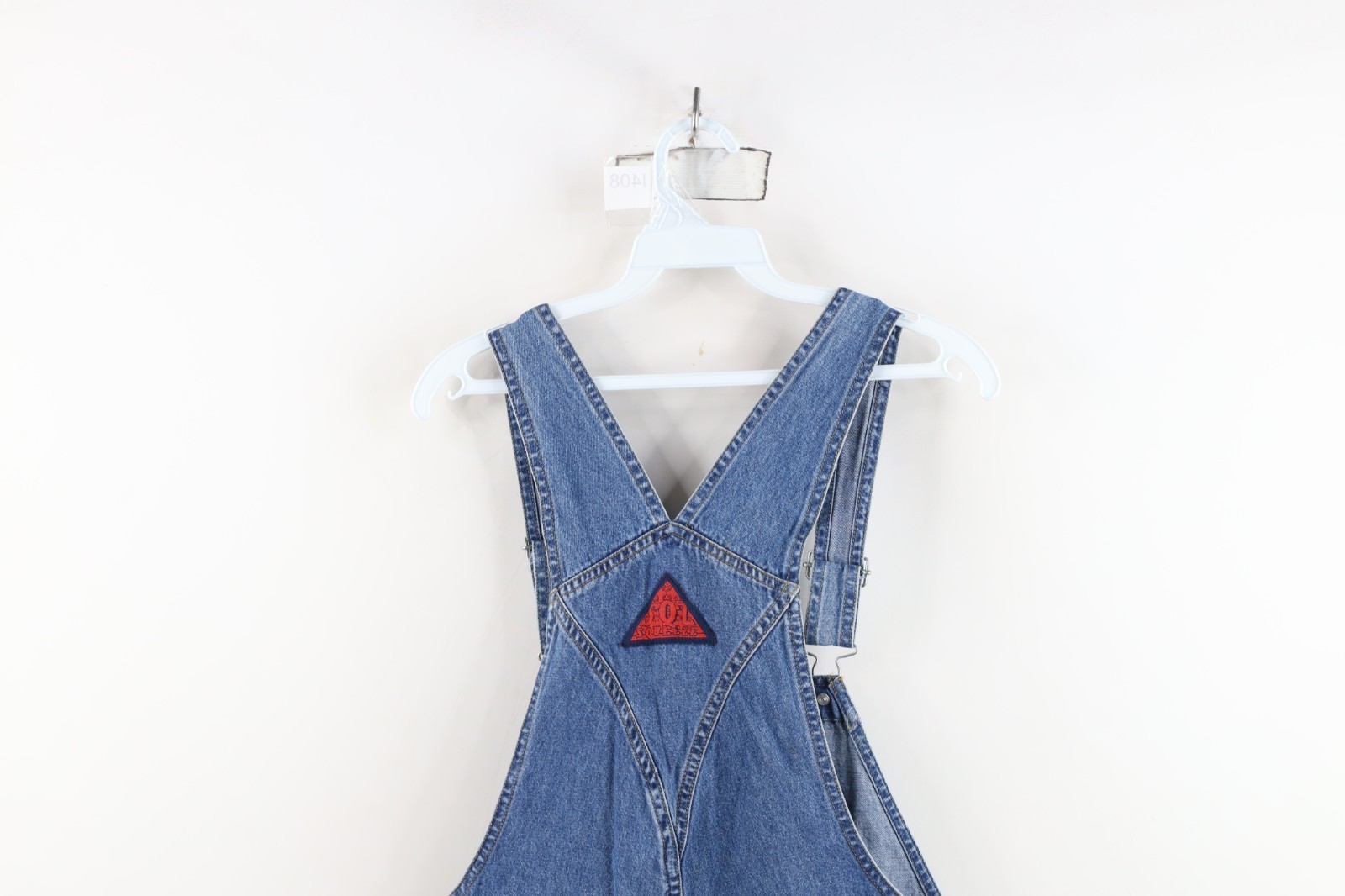 Vintage 90s Streetwear Womens Large Faded Denim Jean Shortalls Overalls Blue
