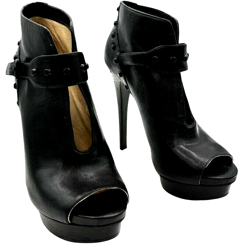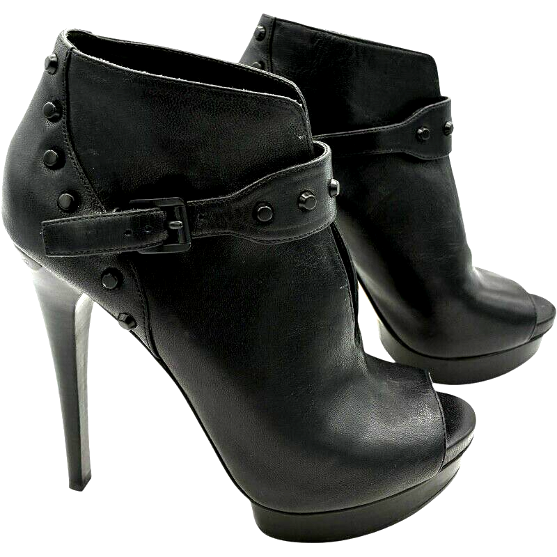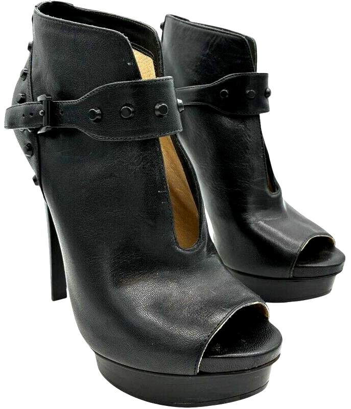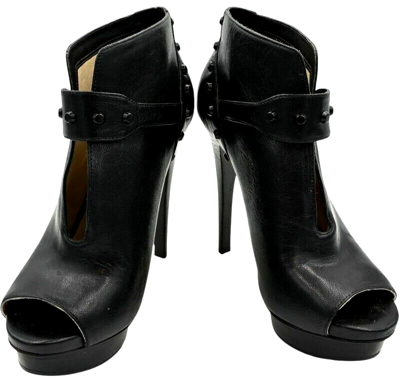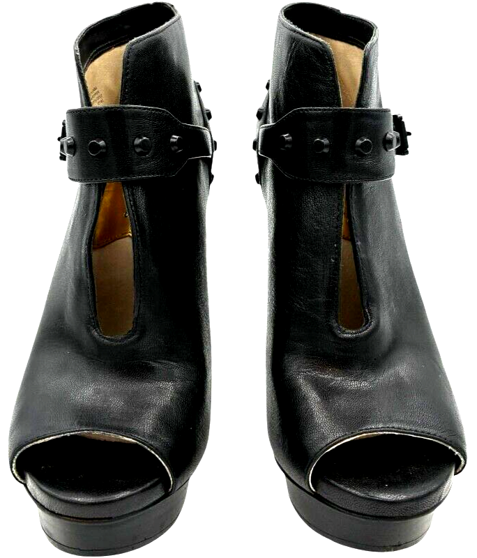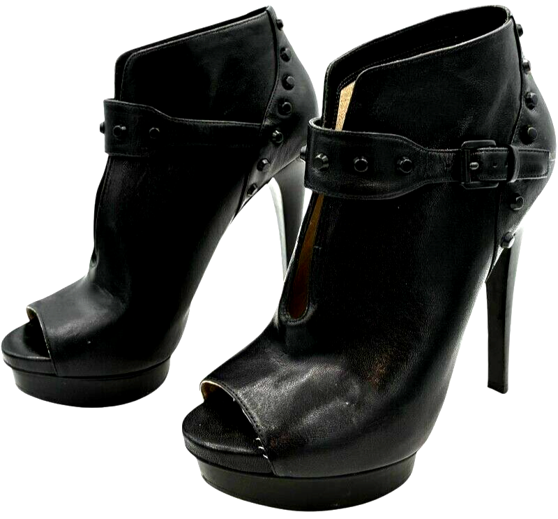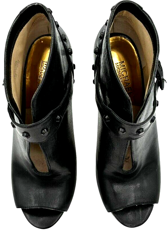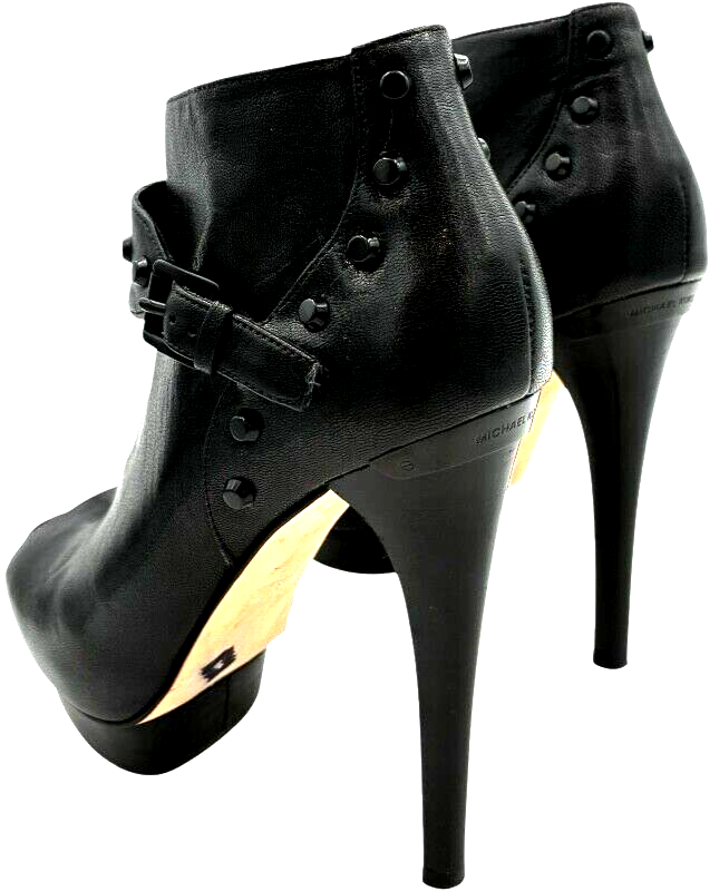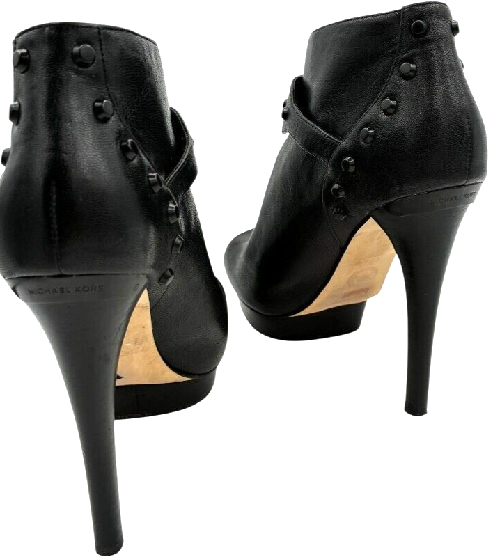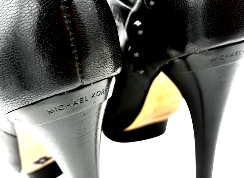 michael kors women's black leather studded platform peep toe stiletto 5 inch heels size 7.5 M