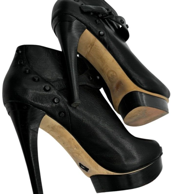 michael kors women's black leather studded platform stiletto 5" heels size 7.5 M