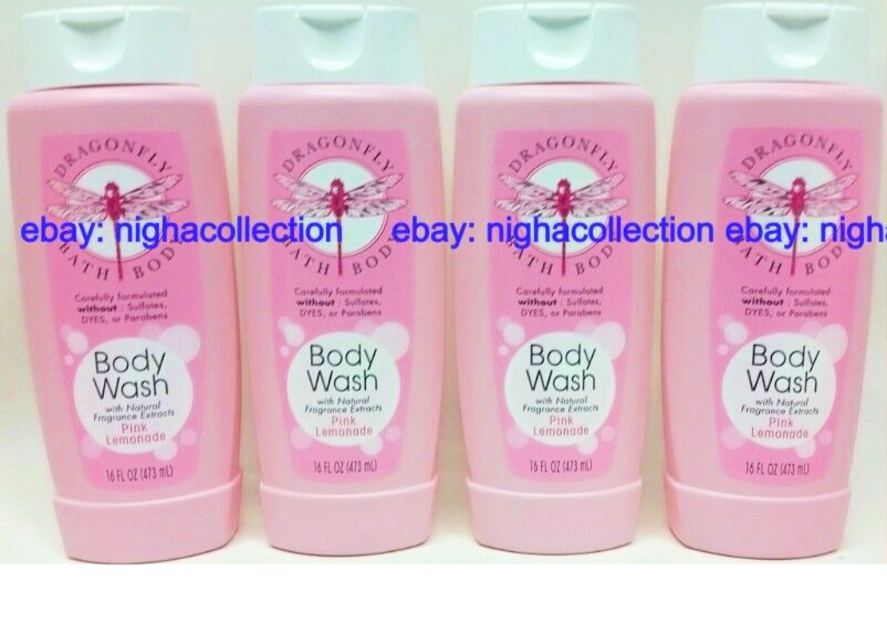 ( LOT 4 ) Dragonfly Bath Body Wash PINK LEMONADE with Natural Fragrance Extracts