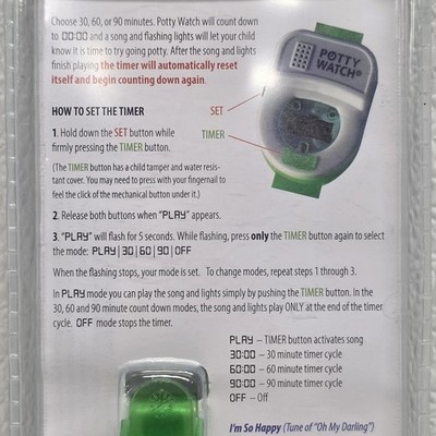 Potty Time The Original Potty Watch Green Toilet Training Aid - New! Images show actual item that will ship.
