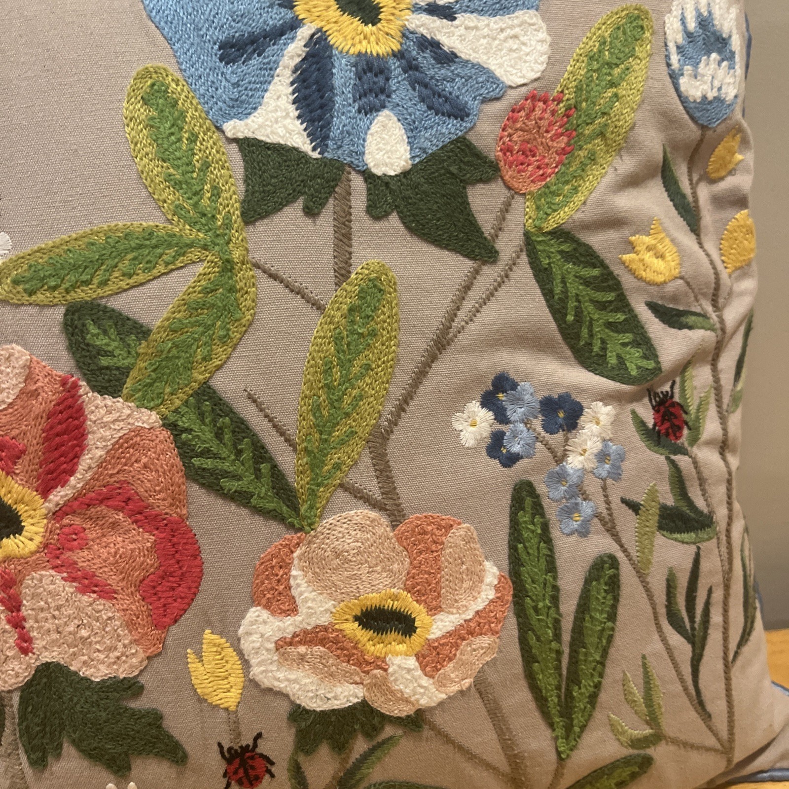 Pier One Pillow Embroidered Flowers Blue and similar items