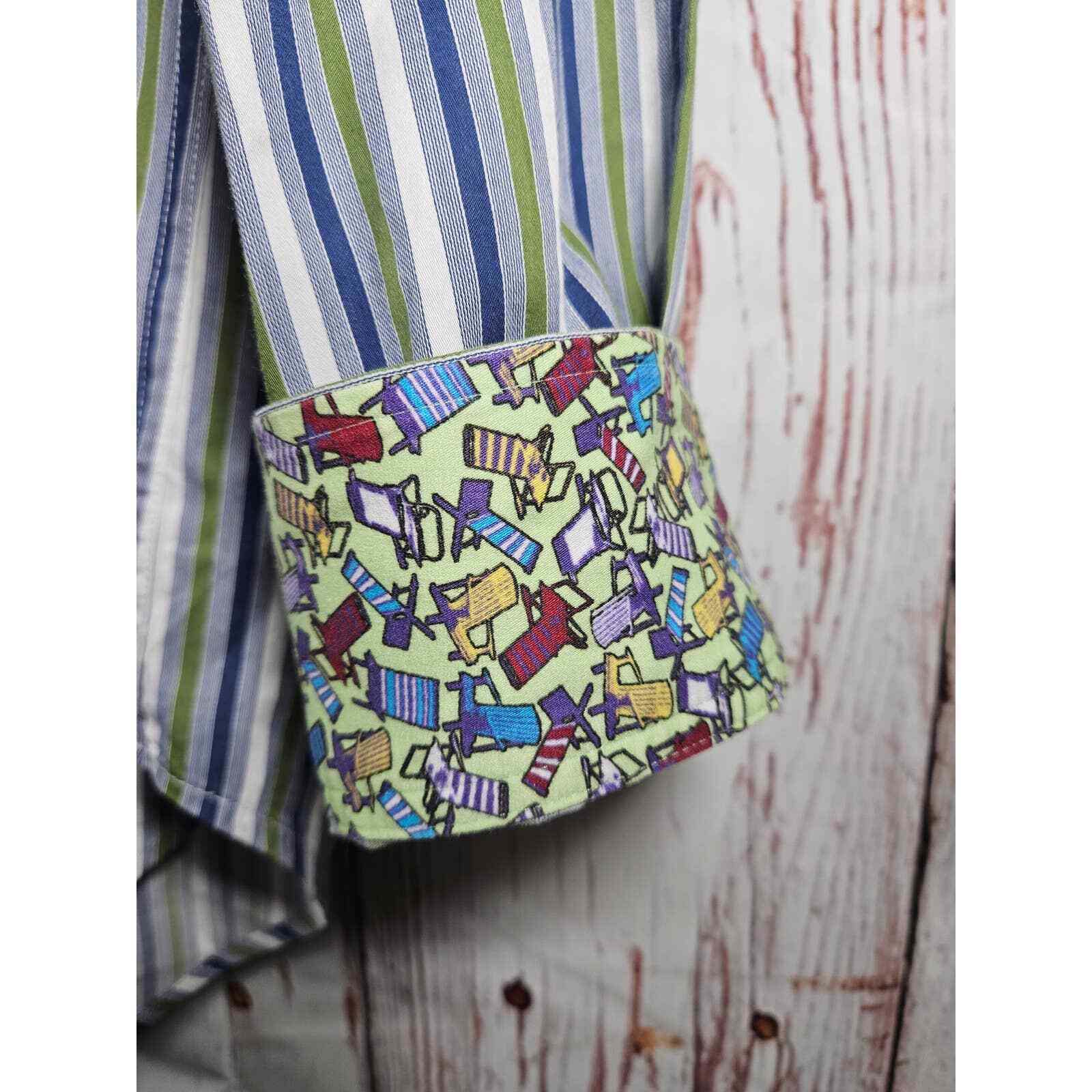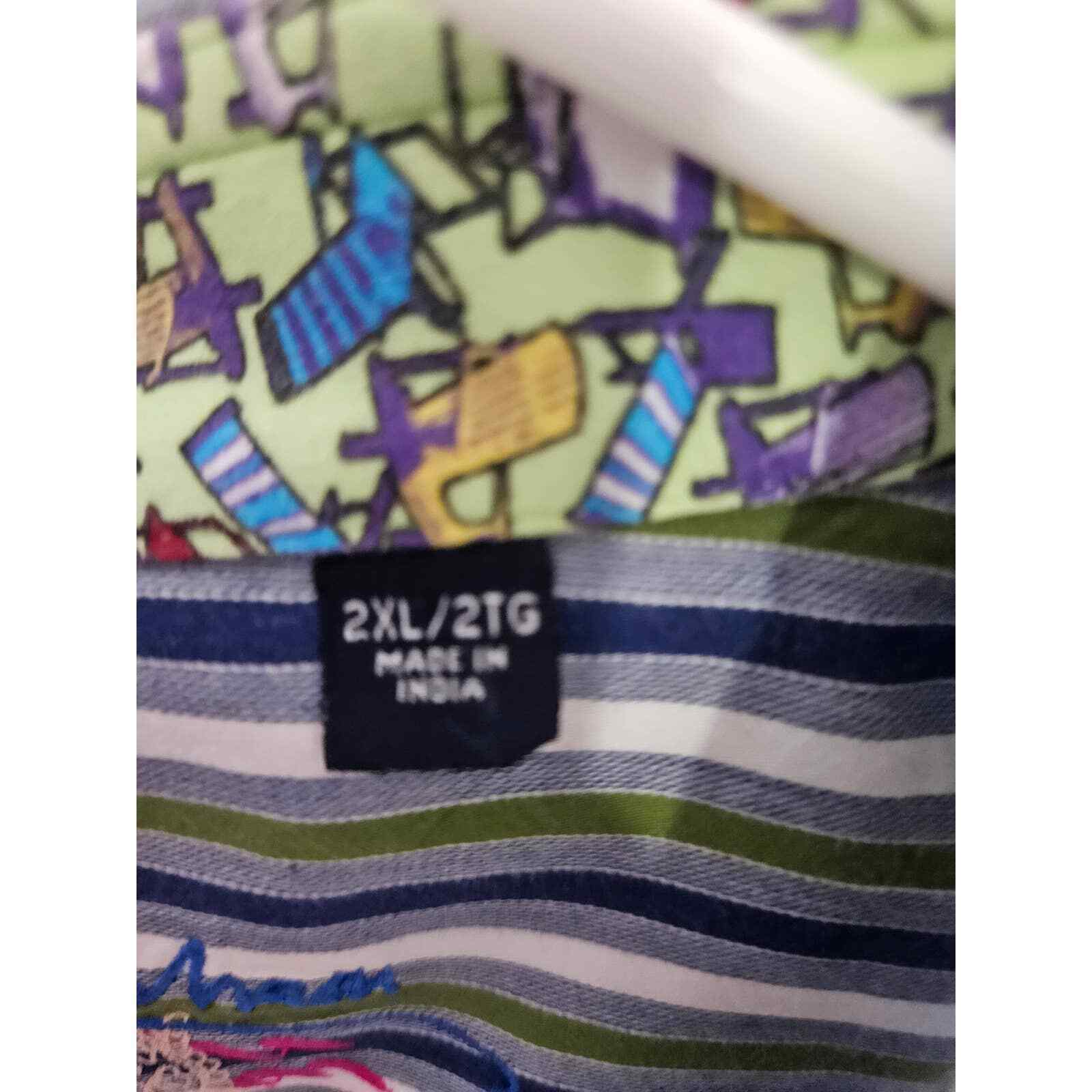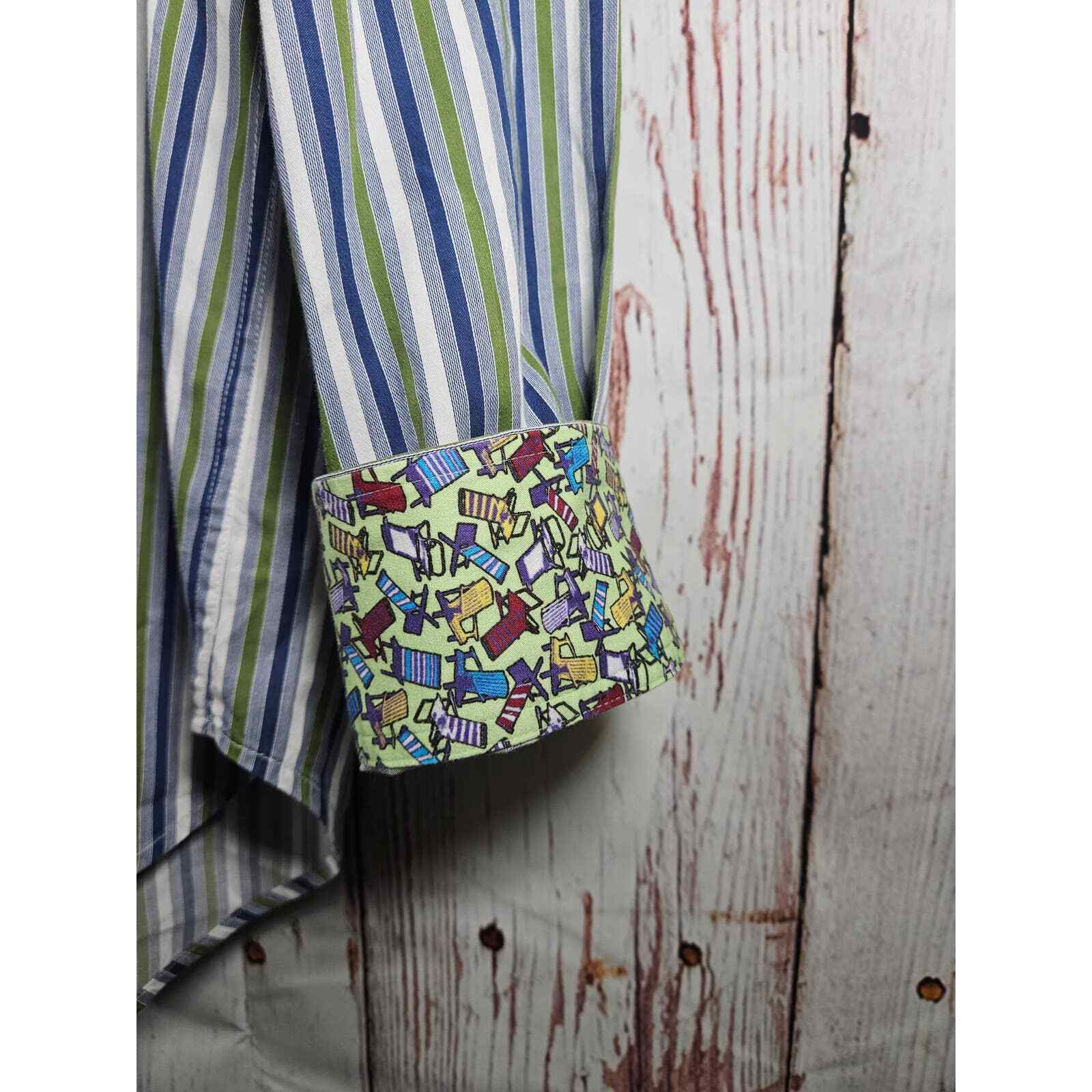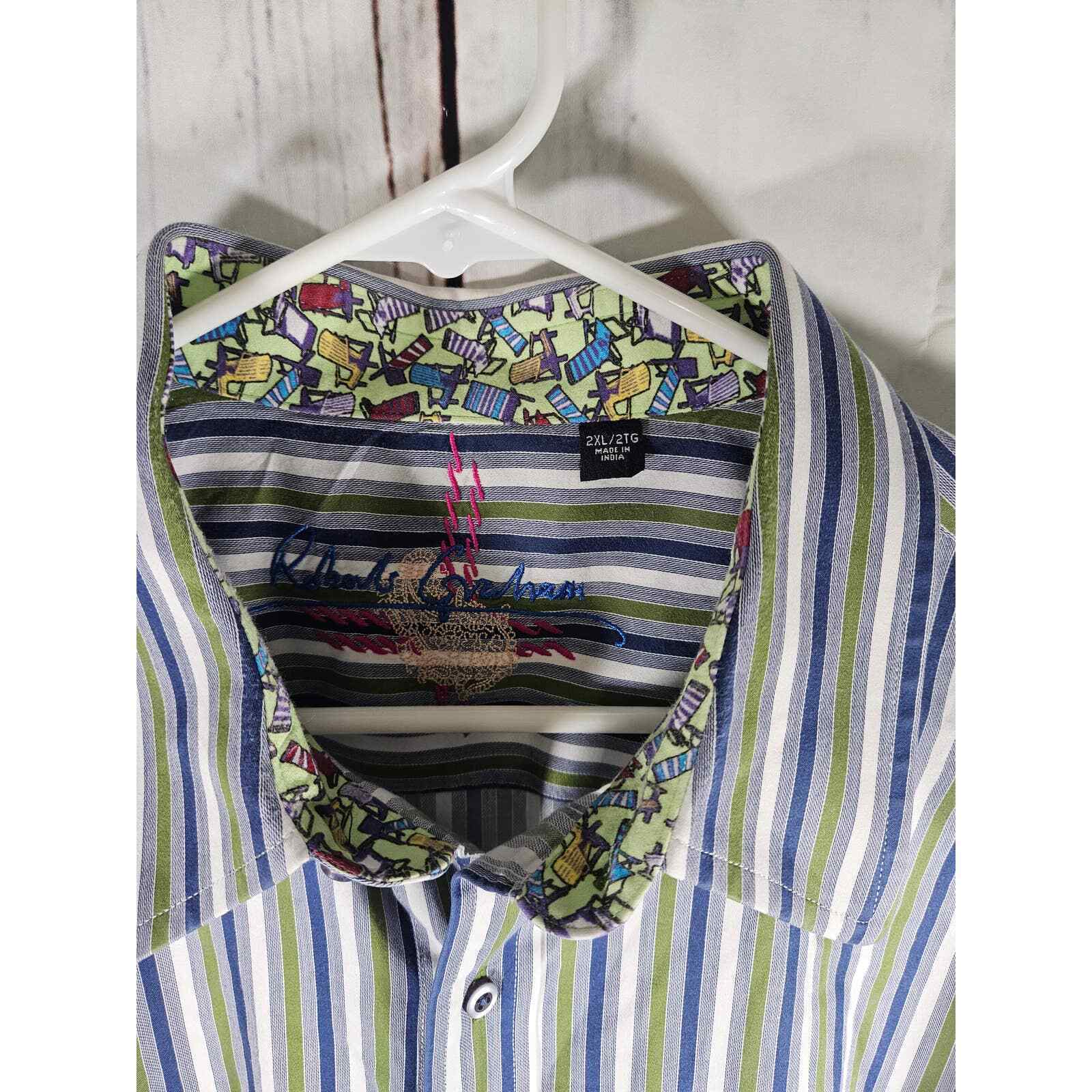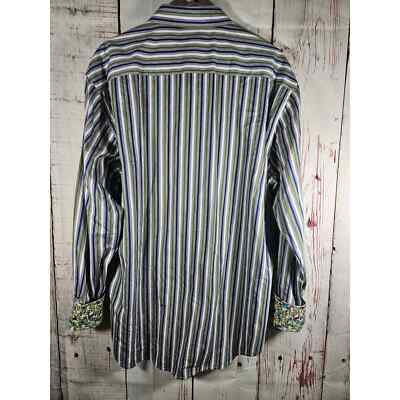 Robert Graham Mens Long Sleeve Button Down Blue Green Stripes Beachchair Cuff 2XL