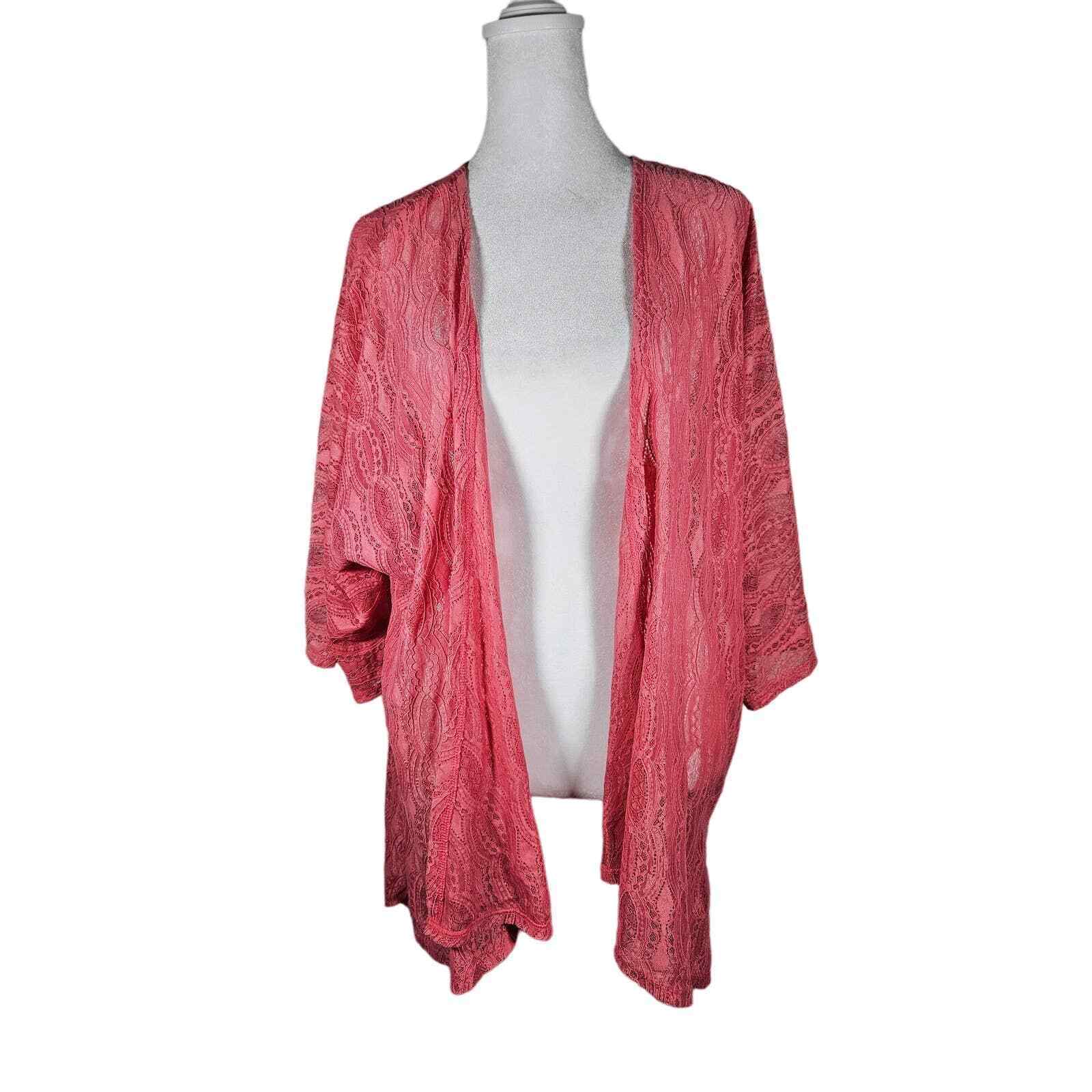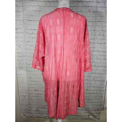 Lularoe Womens Coral Pink Lace Tunic Medium Cardigan Open Front