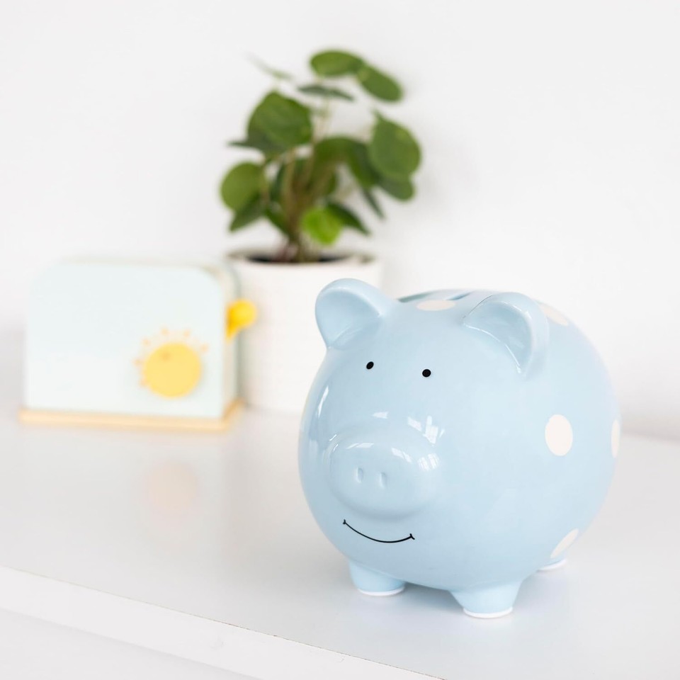 Pearhead Ceramic Piggy Bank, Baby Boy Money Bank Keepsake, Nursery Décor
