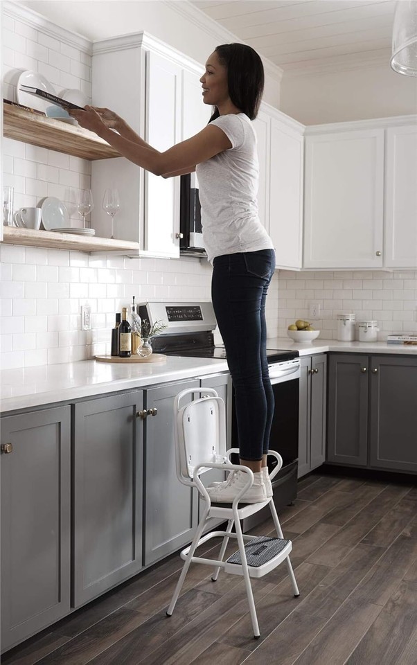 MULTI-PURPOSE - Counter height chair doubles as a step stool