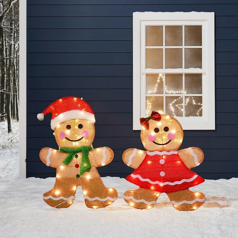 Dazzle Bright Christmas Outdoor Decorations Yard, 2-Piece Lighted 2D Gingerbread