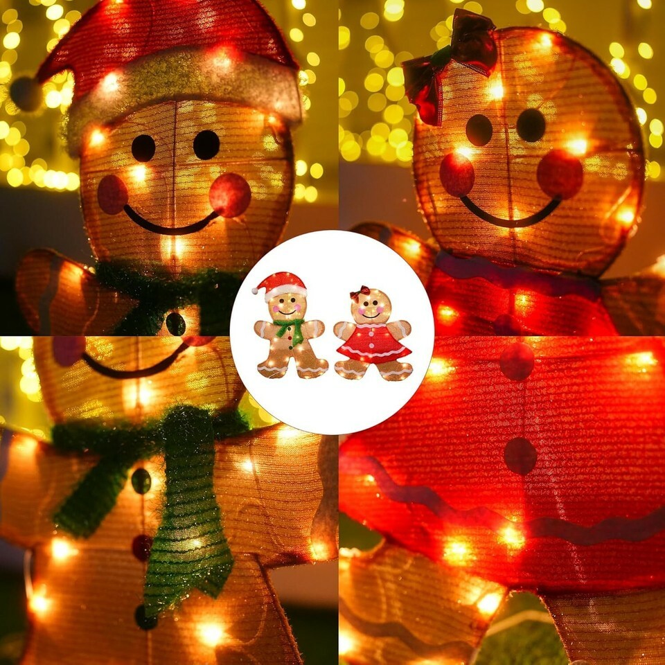 LIGHT UP INDOOR OUTDOOR: These Gingerbread Man Christmas decorations features build-in 50 INCANDESCENT LIGHTS, create a glowing nighttime display, suitable for multiple use for indoor outdoor decorations.