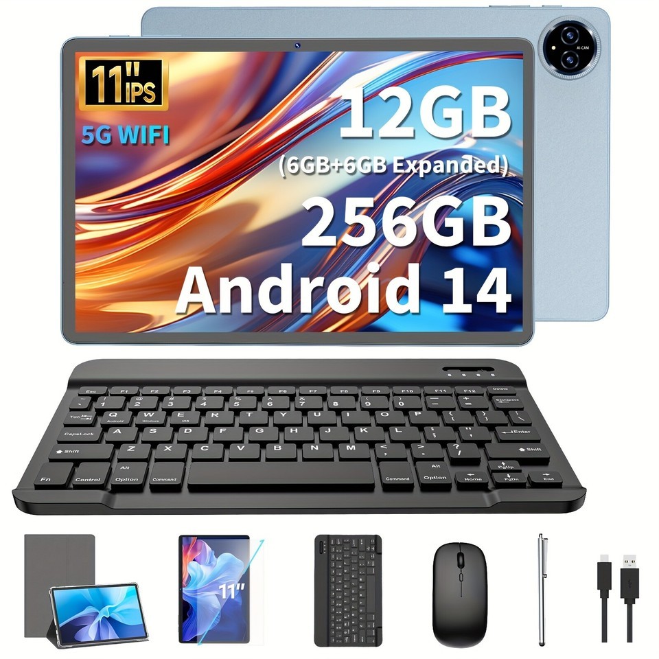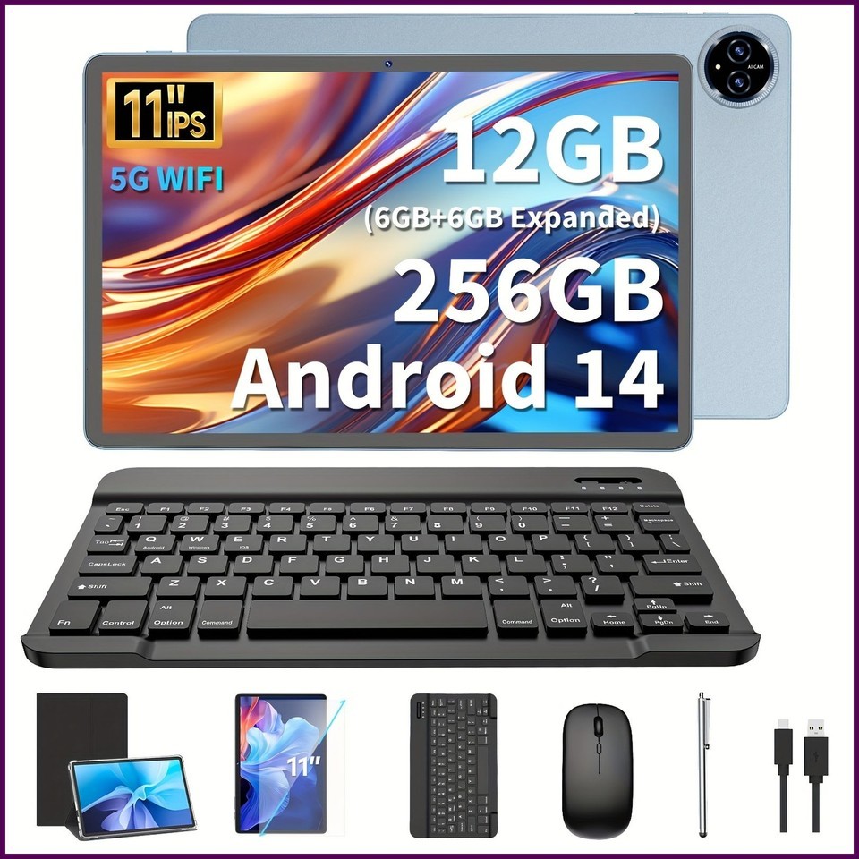 QDDQ 11" Android 14 Tablet 256GB+12GB WiFi w/ Keyboard, Mouse, Stylus, Case