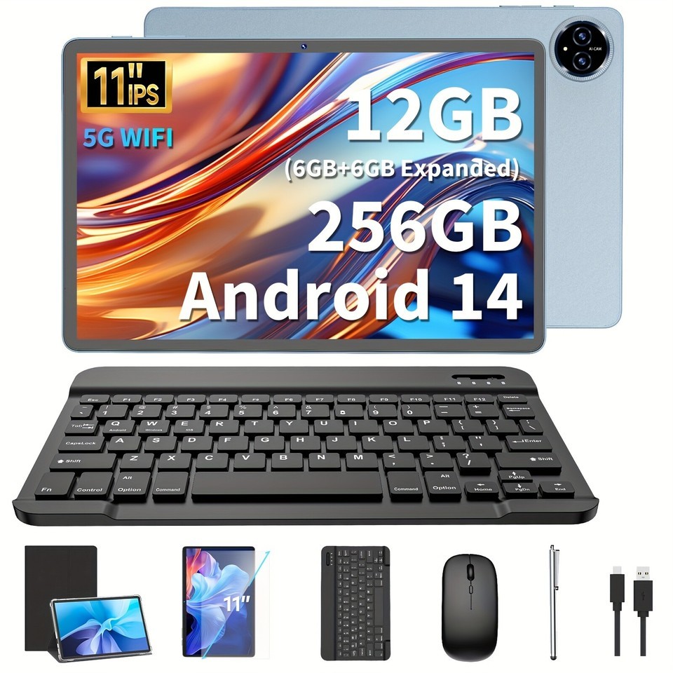 QDDQ 11-Inch Android 14 Tablet | 2-in-1 Tablet with Keyboard, Mouse, Stylus, Case | 256GB Storage + 12GB RAM | Dual Camera, WiFi, FHD IPS Touchscreen