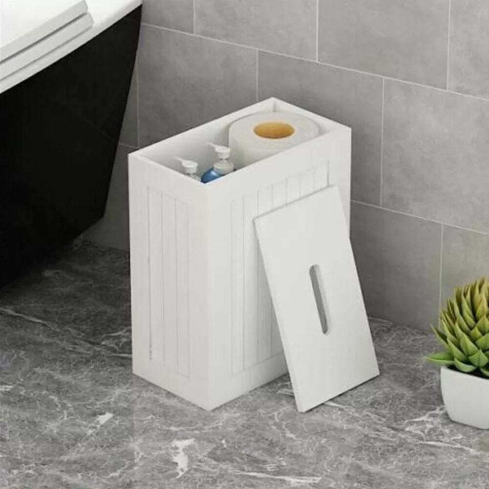 Wooden Slimline Shaker Unit Multi-purpose Bathroom Storage Toilet Rolls Lidded U