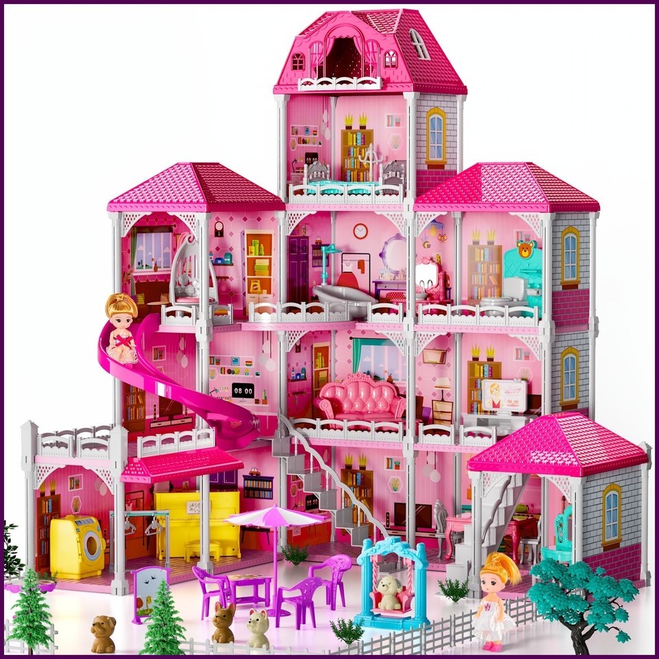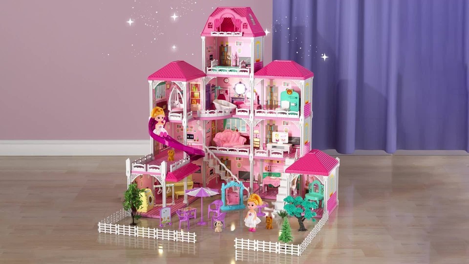 12-Room Pink Dollhouse with Dolls & Slide – and similar items