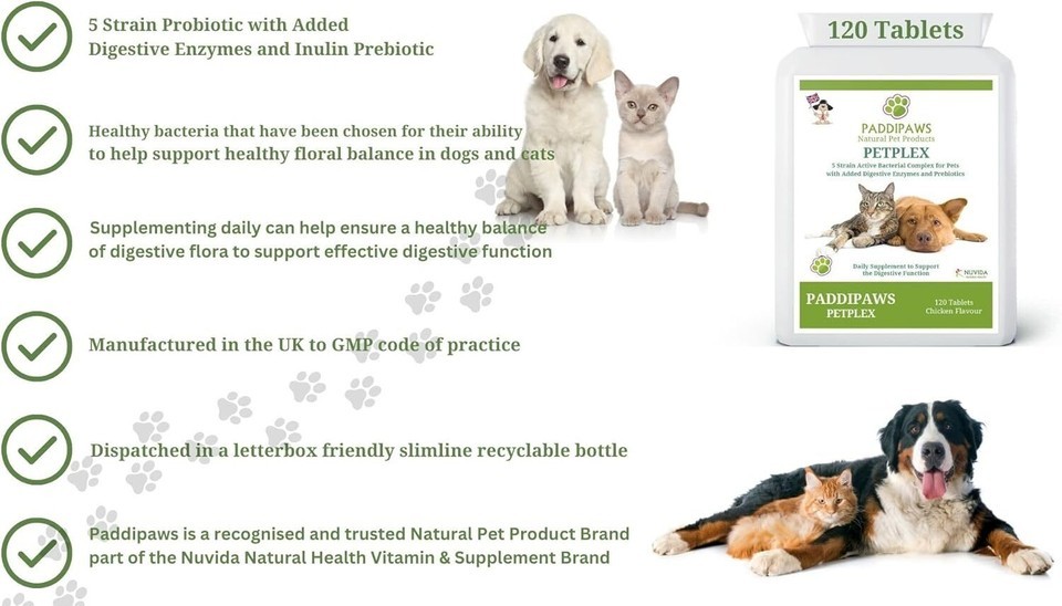PADDIPAWS Probiotics for Dogs Cats ? 120 Chicken-Flavoured Tablets