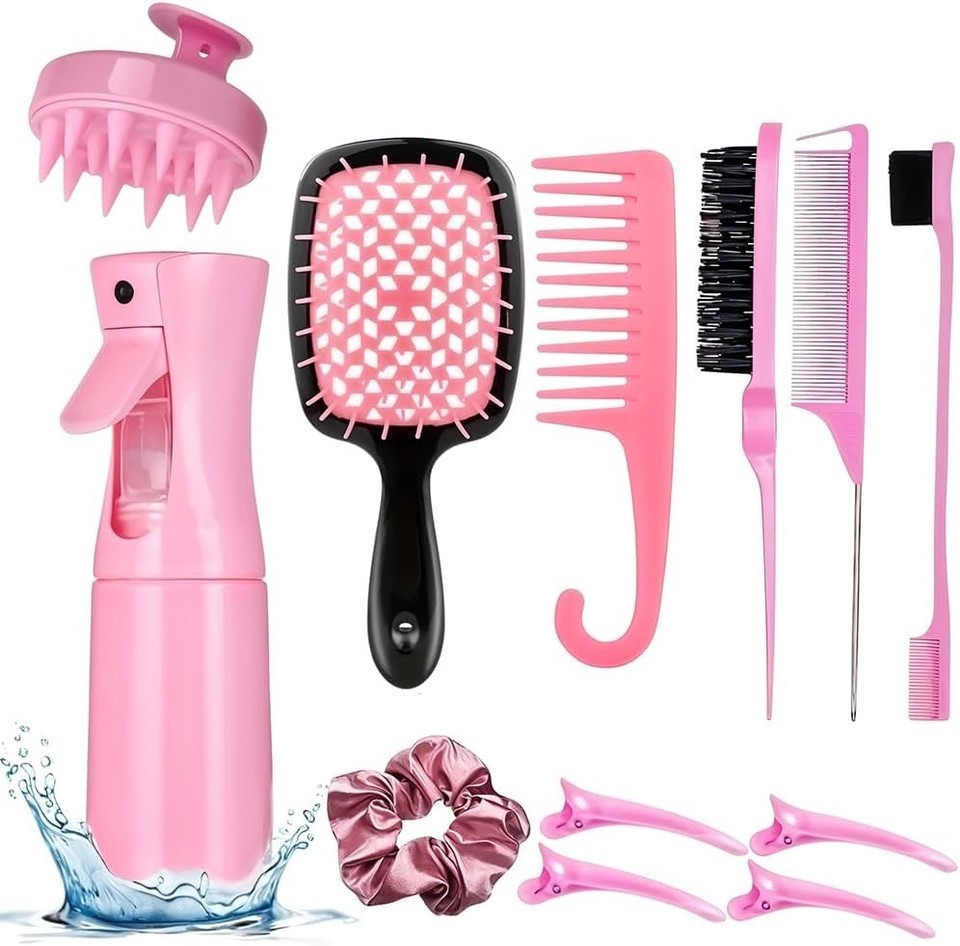 12Pcs Hair Comb Detangling Brush Set for Women | Curly Hair Styling Kit with Spray Bottle Sectioning Clips | Professional Salon Hair Tools - 36**