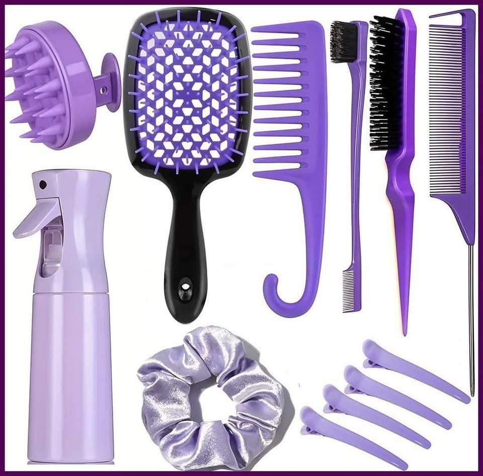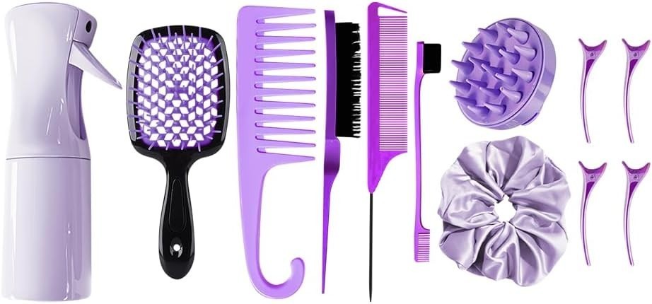 Tame tangles and style with ease using this 12-piece hair styling set, specially designed for curly, coily, and textured hair types (3A?4C). Whether at home or in the salon, this kit includes everything you need to detangle, part, section, hydrate, and define your curls effortlessly.
