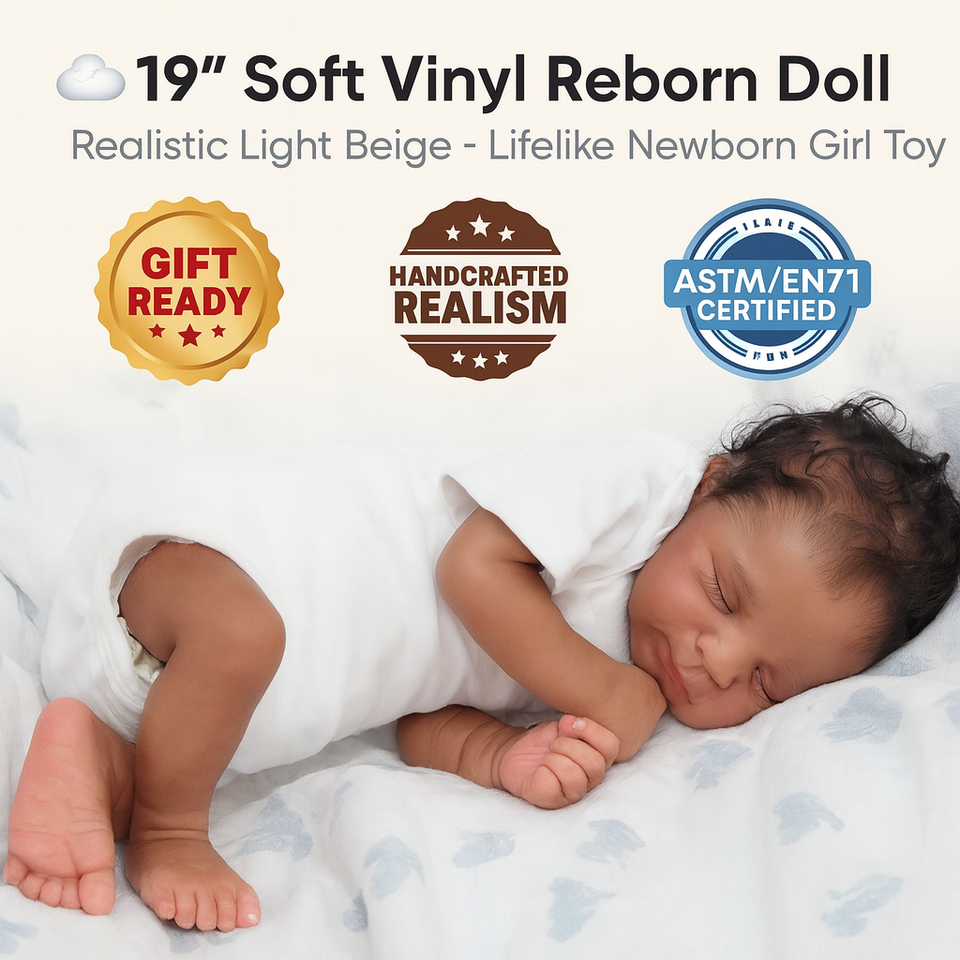 Bring home the warmth and charm of a real baby with this 19-inch lifelike reborn doll. Carefully handcrafted with detailed features, this beautiful sleeping baby girl is perfect as a gift, collectible, or nursery display. Each doll is lovingly painted with delicate 3D skin tones, hand-rooted hair, and realistic eyelashes ? designed to capture hearts of all ages.