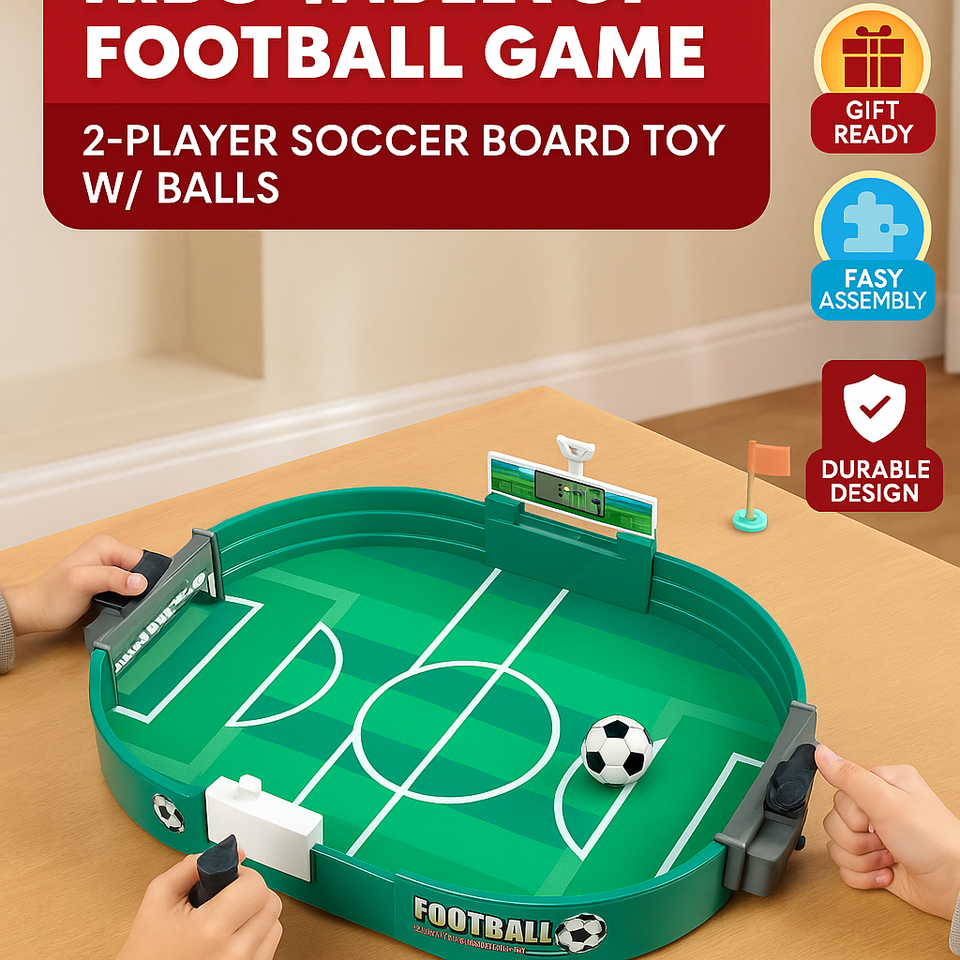 Bring the fun of the pitch home! This Mini Tabletop Football Game lets kids and families enjoy thrilling head-to-head matches anywhere ? no batteries, no screens, just pure excitement and laughter. Perfect for parties, holidays, or everyday fun!