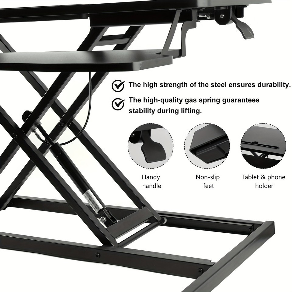 Smooth Height Adjustment: Gas spring lift system allows seamless transition from sitting to standing with minimal effort.