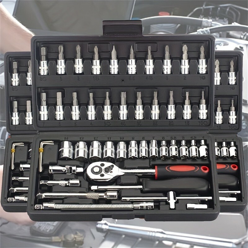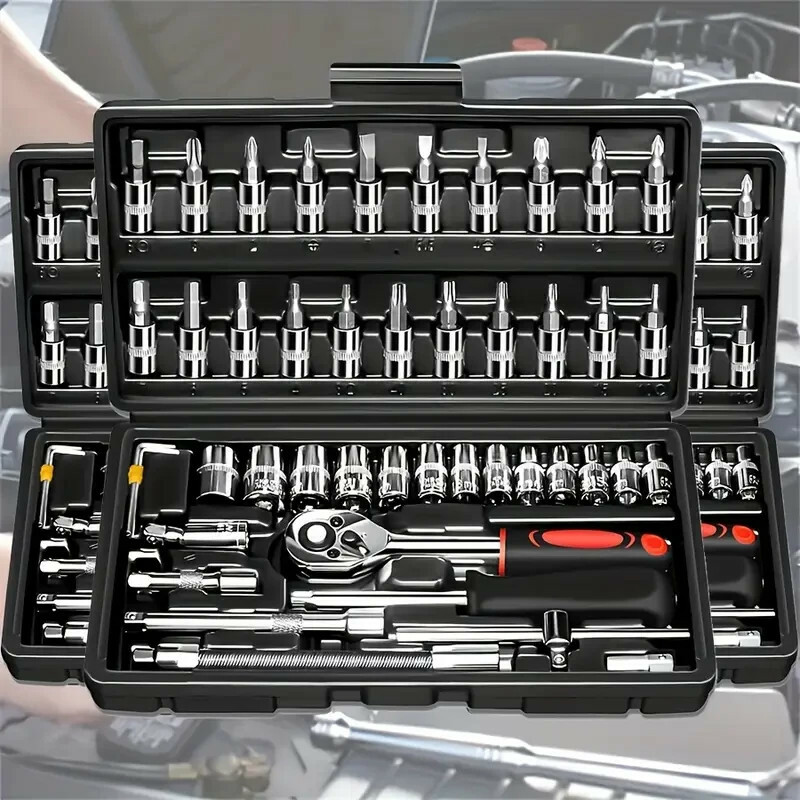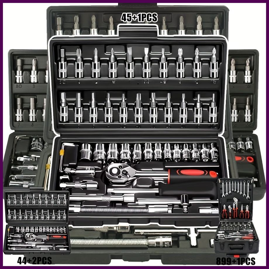 High-end Professional 45+1/44+2/898+1-piece Tool Set, Auto/bicycle Repair Machinery Kit, 1/2 Inch *1/4 Inch 3/8 Inch Drive Depth And Standard Wrench Set, Race-grade Auto Parts Repair Ratchet Wrench And Other Auto Repair Accessories Tool Set