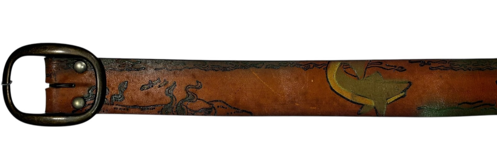 32in brown leather belt handpainted sharks and similar items