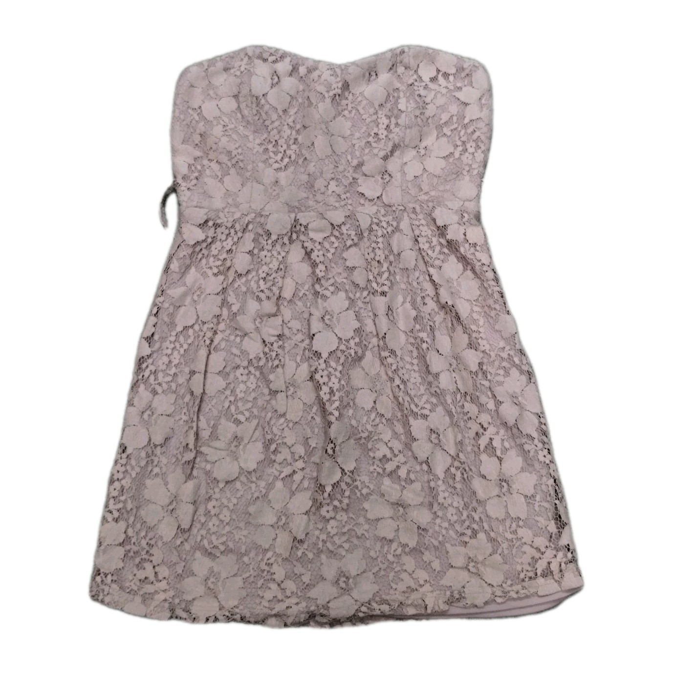 Chic and fun strapless dress by Rue 21, perfect for spring and summer outings. Features a flattering strapless neckline and fitted waist. Originally came with a belt, but belt is not included.