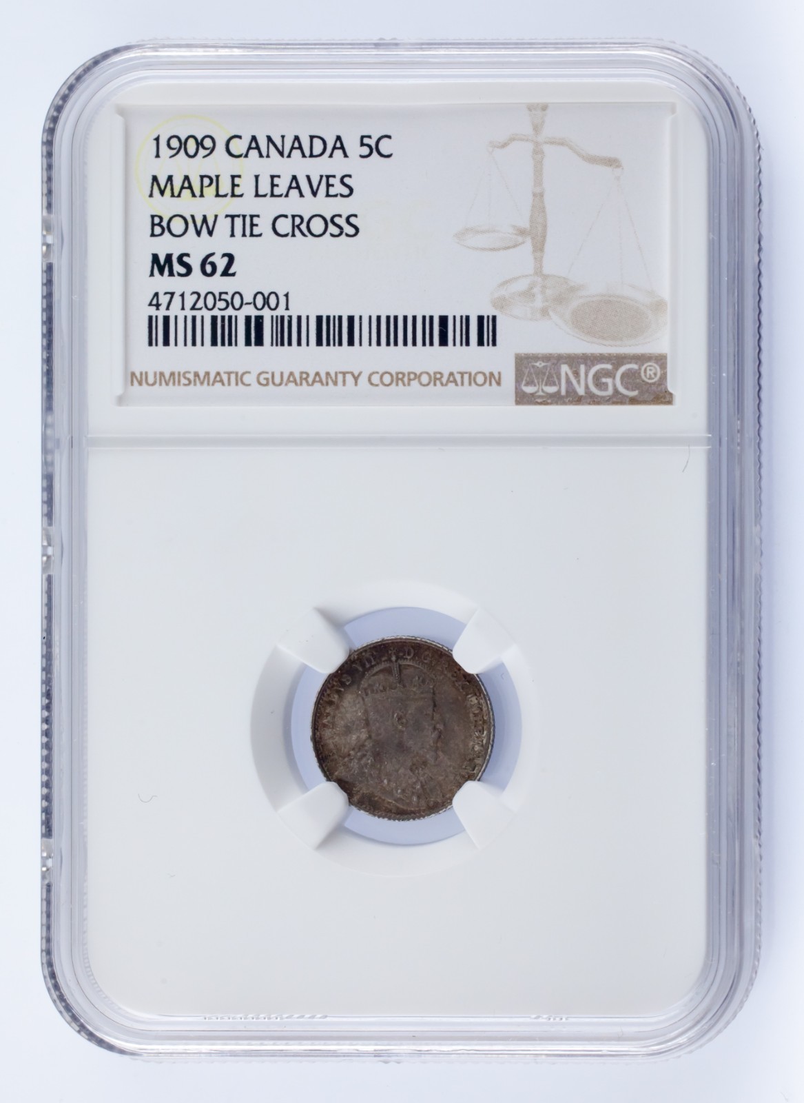 1909 Canada 5c Hojas de arce Tie Tie Cross Graded por NGC como MS62